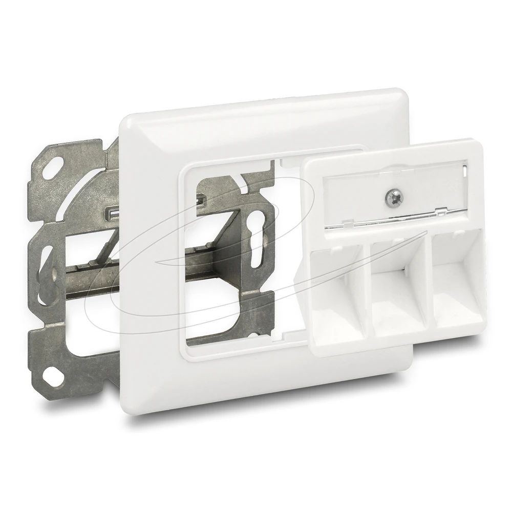 The Delock wall outlet can be installed in a wall or in a box with a 60 mm opening. Thanks to its standard size, it can be used to easily attach 3 Keystone modules.