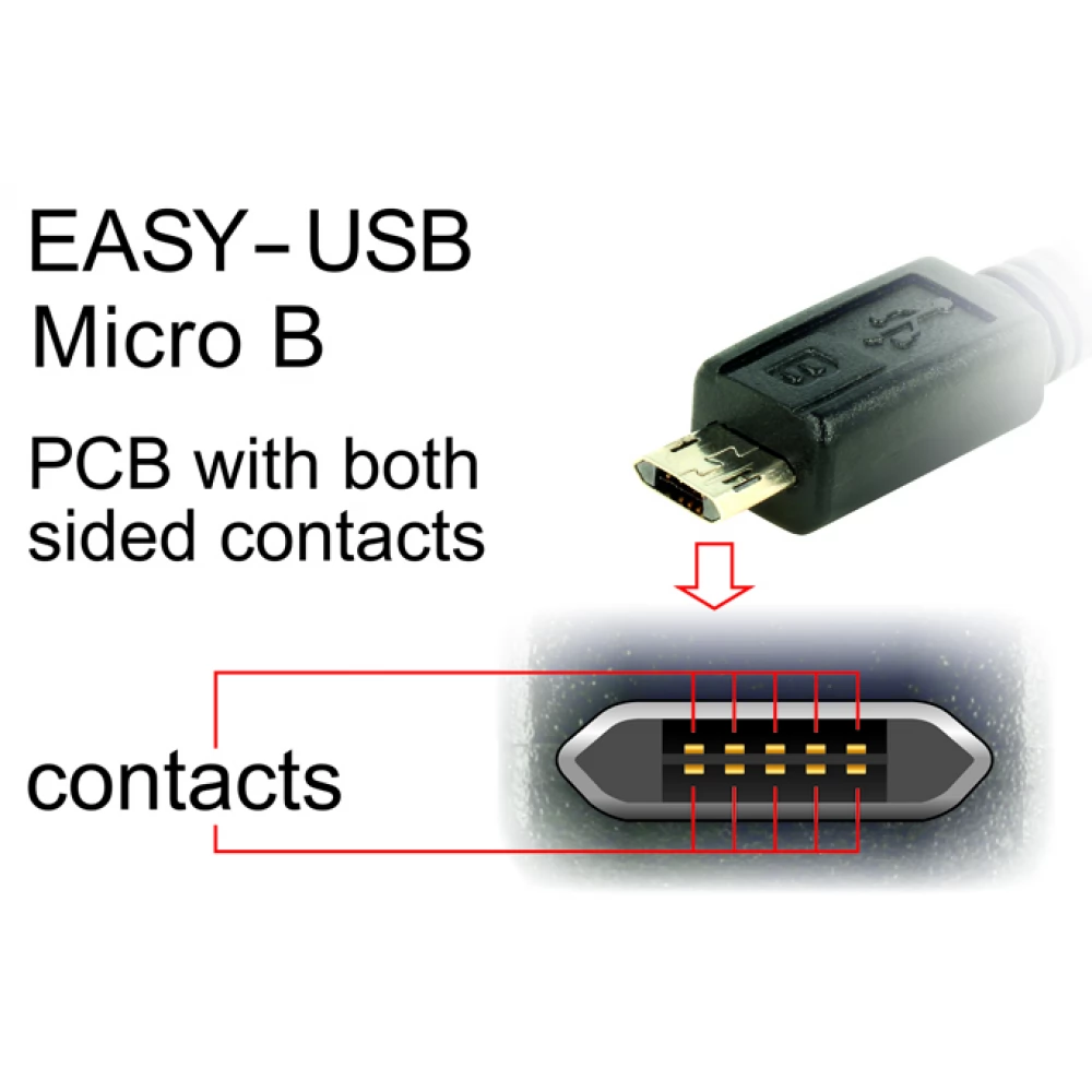This Delock cable with EASY-USB type A connector and EASY-USB Micro-B type connector can be connected to the corresponding USB socket in both directions. For this reason, the plug can be used in two directions,...