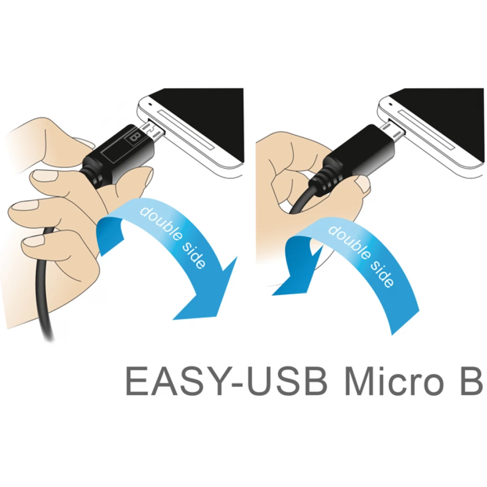 This Delock cable with EASY-USB type A connector and EASY-USB Micro-B type connector can be connected to the corresponding USB socket in both directions. For this reason, the plug can be used in two directions, which makes the connection easier.