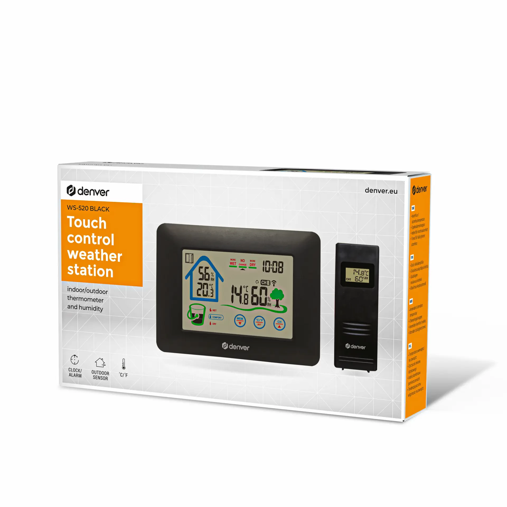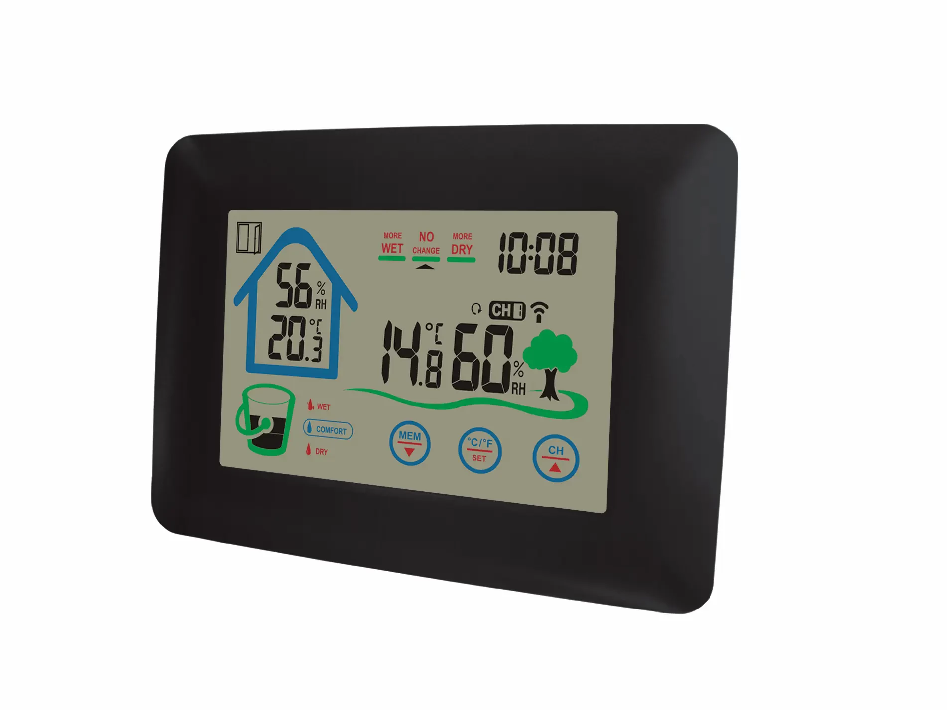 Simple and stylish weather station with a piece of external sensor and 3 touch button on the screen. On the screen, you can follow the value of the external/internal temperature and humidity, the comfort...