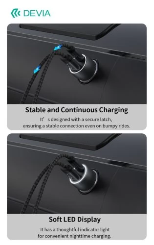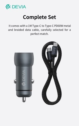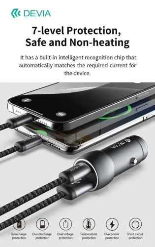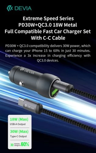 DEVIA Extrem Speed Car fast charger 1xUSB+ USB-C 30W + USB-C cable black