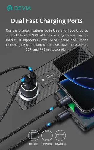 -The car charger has USB and Type-C ports, compatible with 90%of the devices on the market.