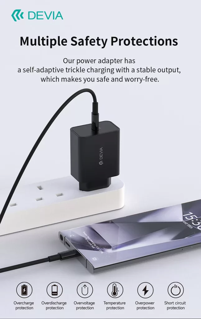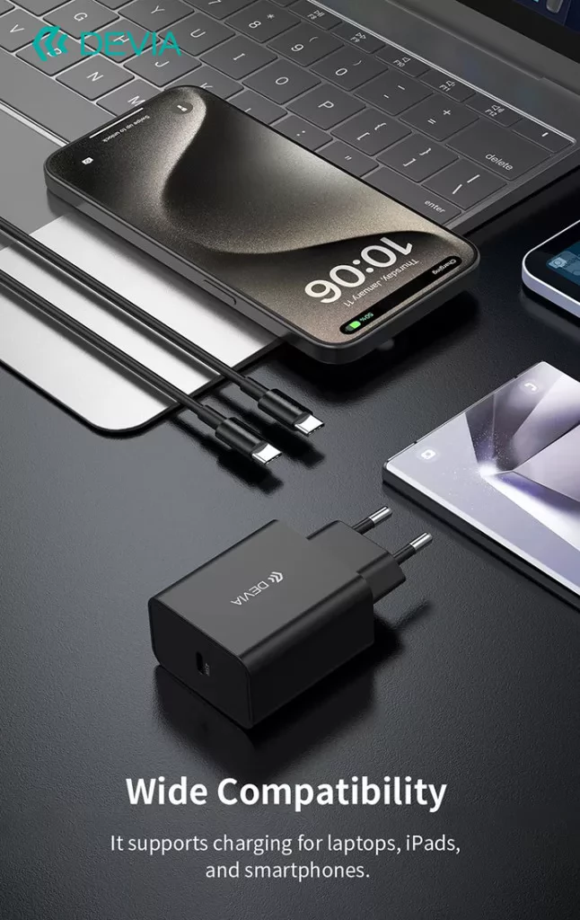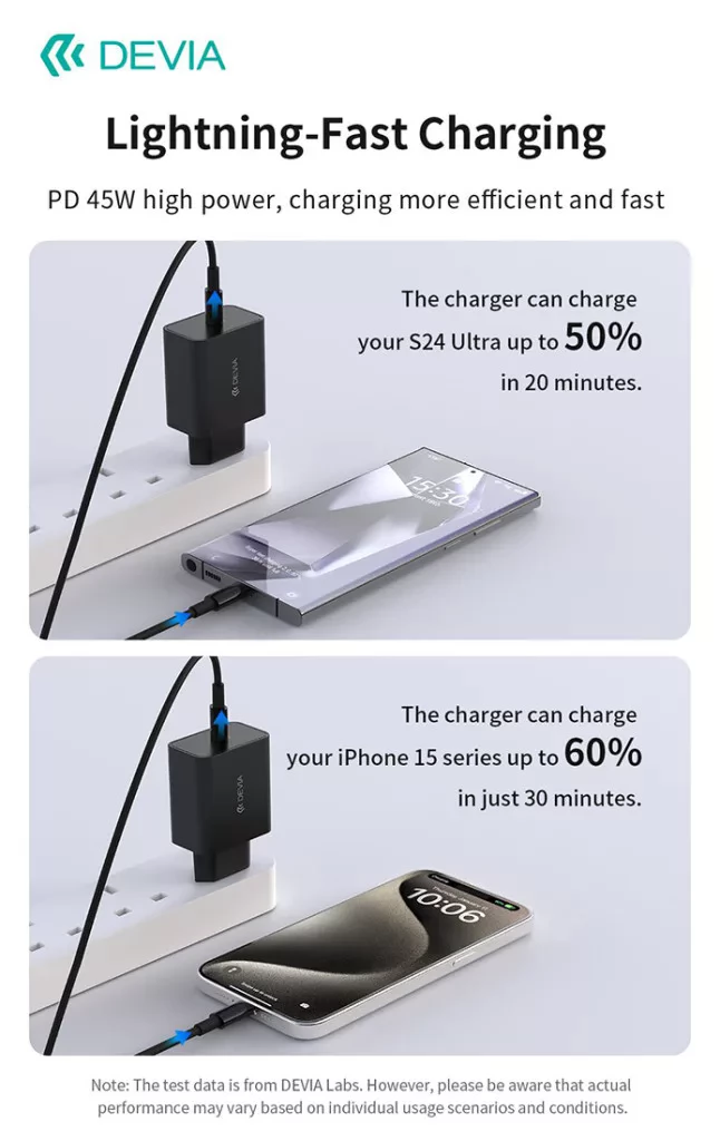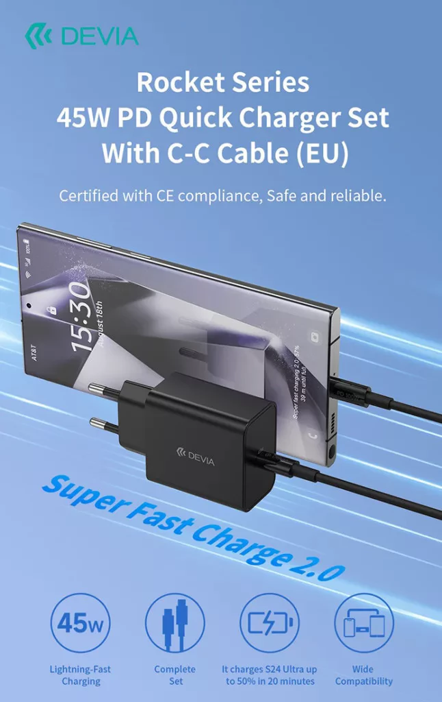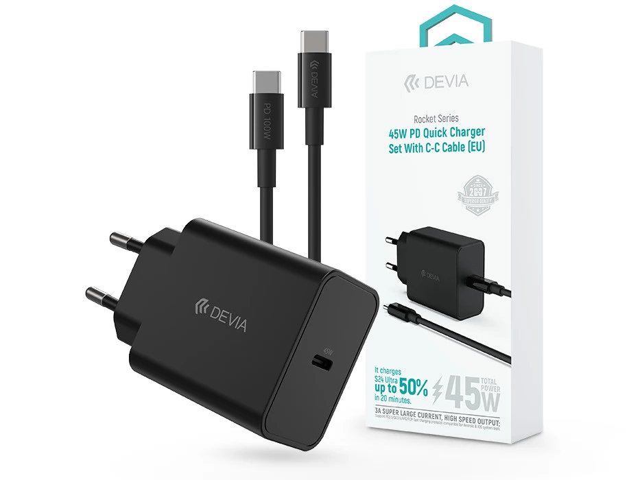 DEVIA Rocket Series PD+QC fast charger adapter + Type-C/Type-C cable 45W black