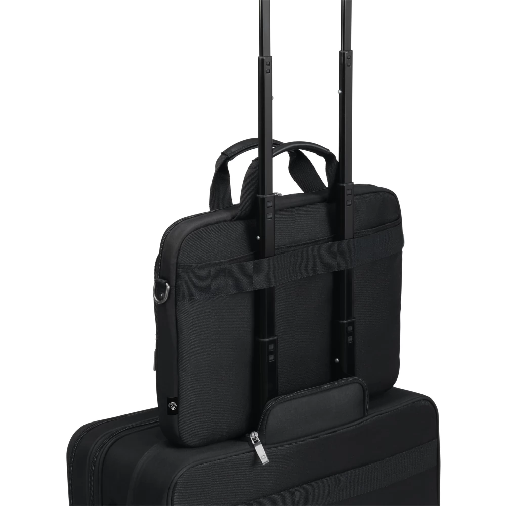 Made from high quality recycled PET without sacrificing quality, functionality or design. The lightweight and particularly shock-absorbing EVA frame protection provides top-quality protection for your device. There is also room for the tablet and accessories with smart storage solutions. The lockable notebook compartment provides perfect protection for your 12-14.1" device with the surrounding high-density foam (HDF) padding and the perforated, lightweight EVA foam corner pad. In addition, the Eco Slim Case SELECT has a padded compartment for your tablet. 12 to .9" and an opening for documents on the back of the bag. Two front pockets provide quick access to your accessories, chargers and cables. The rear car fastening strap and the intelligent internal cable routing for mobile charging ensure perfect comfort when traveling with extra luggage. Eco Slim Case SELECT is the perfect choice if you are always on the go and want to support the recycling of PET bottles with an environmentally friendly bag.