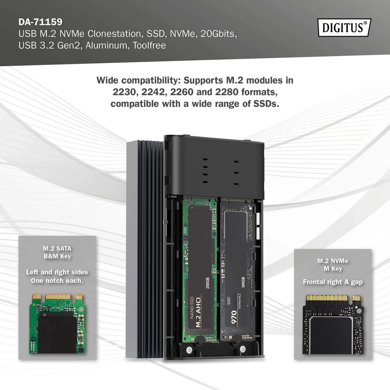 DIGITUS DA-71157 Clonestation M.2 NVMe PCIe SSD USB-C 3.2 house grey