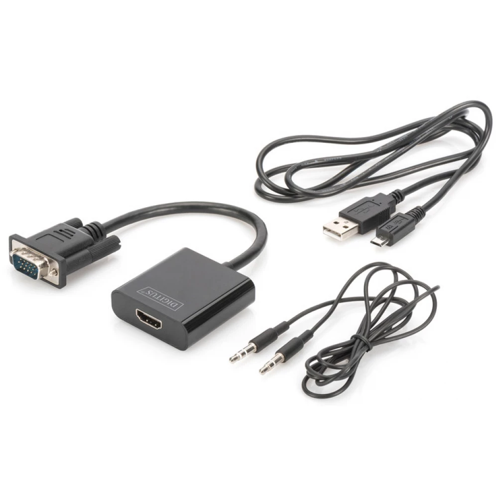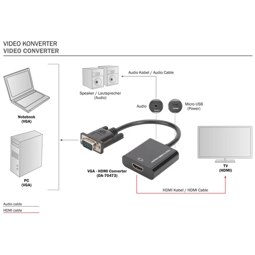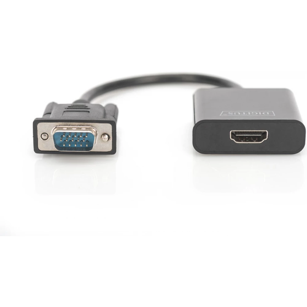 DIGITUS VGA/D-Sub HDMI + Jack Converter Black 15cm DA-70473