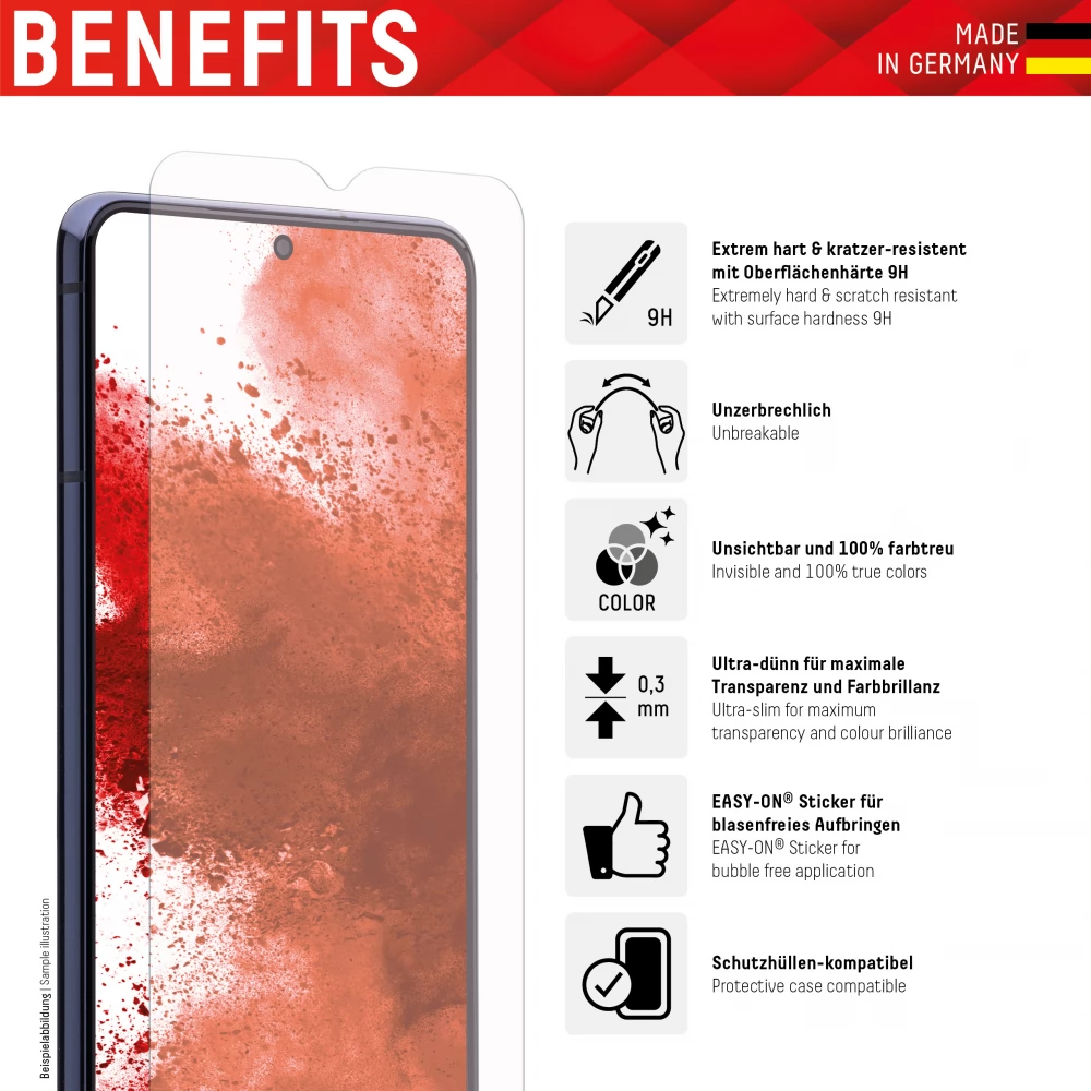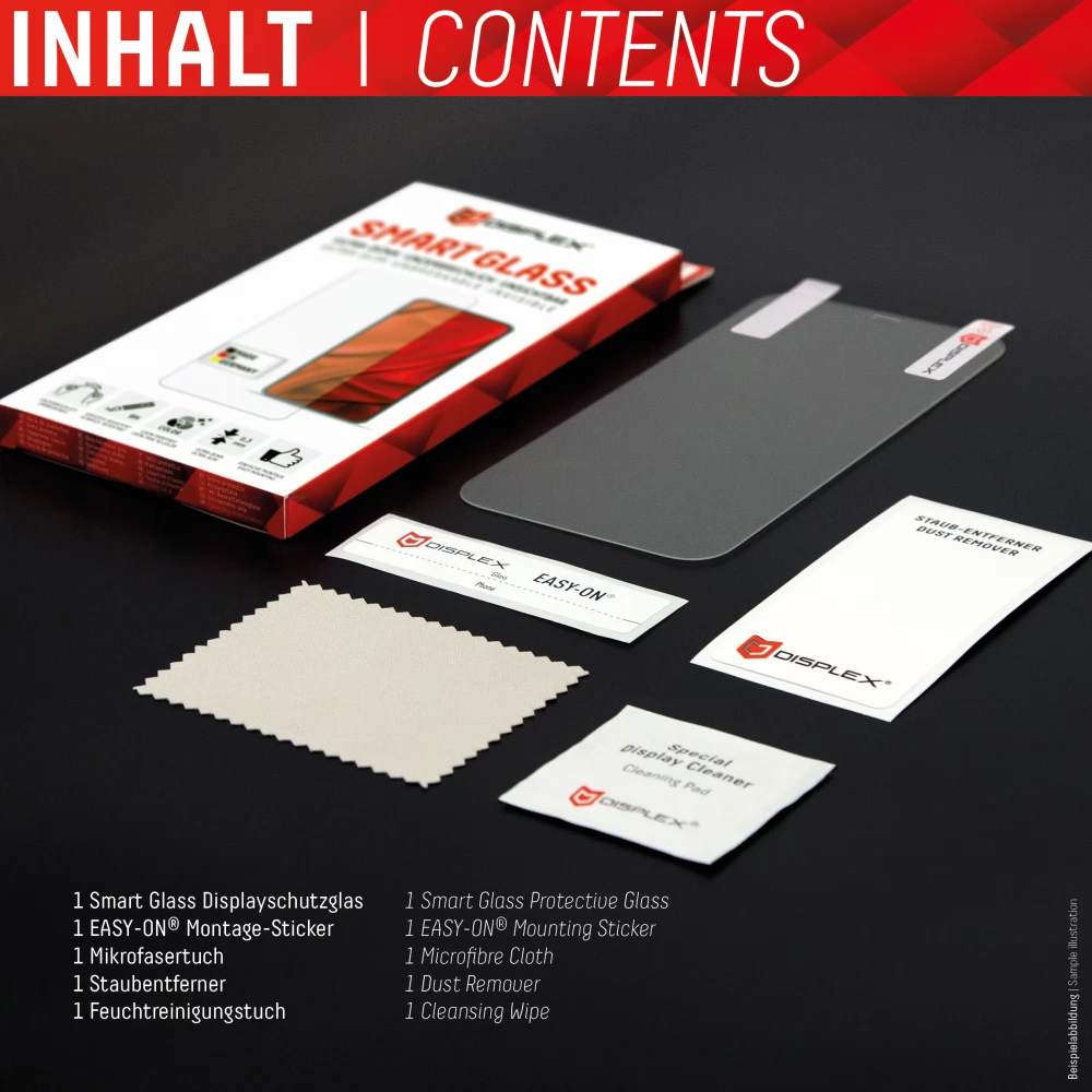 DISPLEX Smart Glass is a combination of traditional protective glass and an extremely thin, flexible, practically indestructible protective film. With its surface hardness of 9H, it offers very good protection against scratches and other damages. At the same time, it is ultra-thin at 0.25 mm, resistant, flexible or bendable, and therefore almost indestructible. DISPLEX Smart Glass is manufactured using the latest laser technology in our production facility in Straubing, Germany, and precisely adapts to the contour of the smartphone display - Made in Germany. Unlimited functionality, brilliant colors and case compatibility are of course guaranteed.