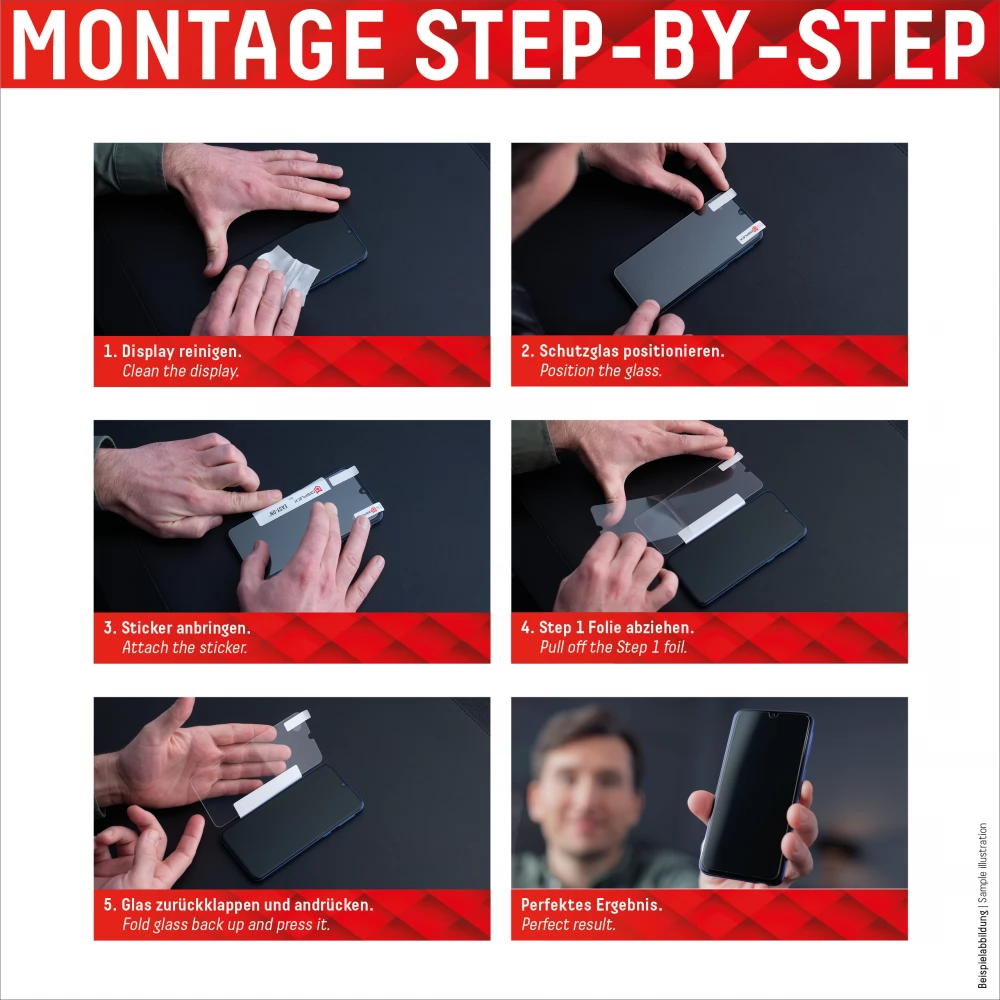 With the EASY-ON® sticker and accompanying instructional videos, the installation of Tempered Glass is incredibly fast, simple and precise. The result is something to behold: no slanted placement of the screen protector on the display, no hidden openings for speakers or microphones, and absolutely no bubbles under the protective glass.
