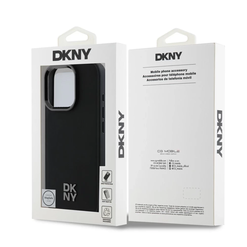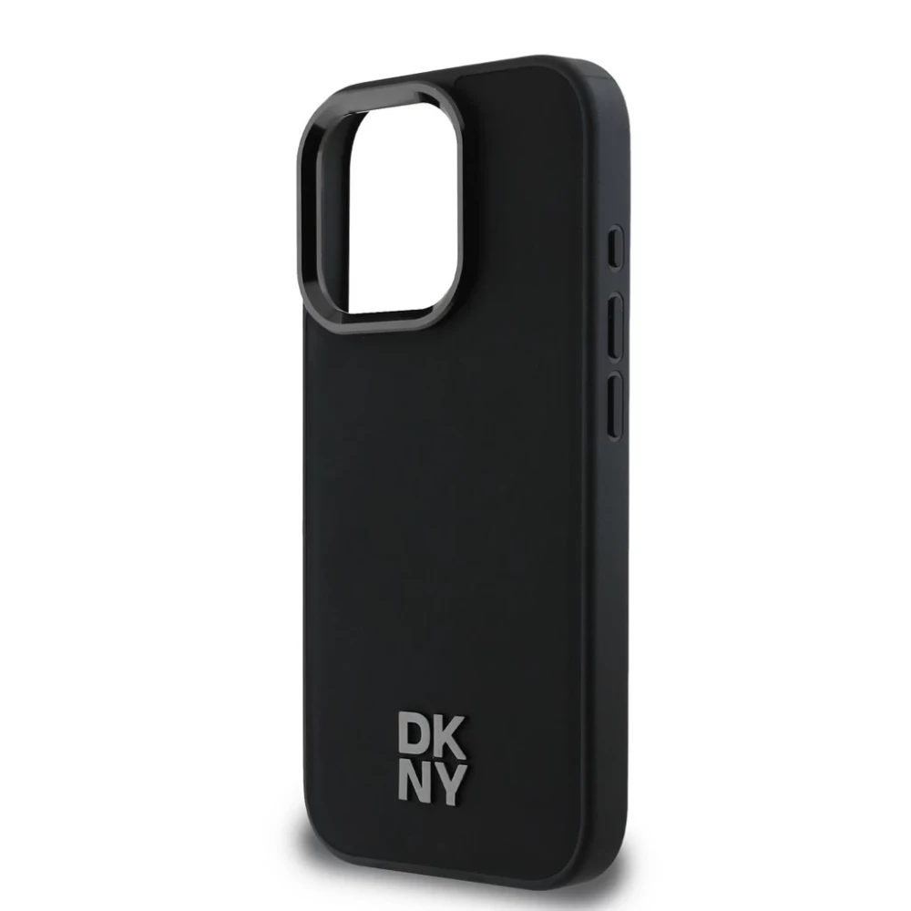 DKNY PU Leather Stack Logo Magsafe case az iPhone 16 Pro device black