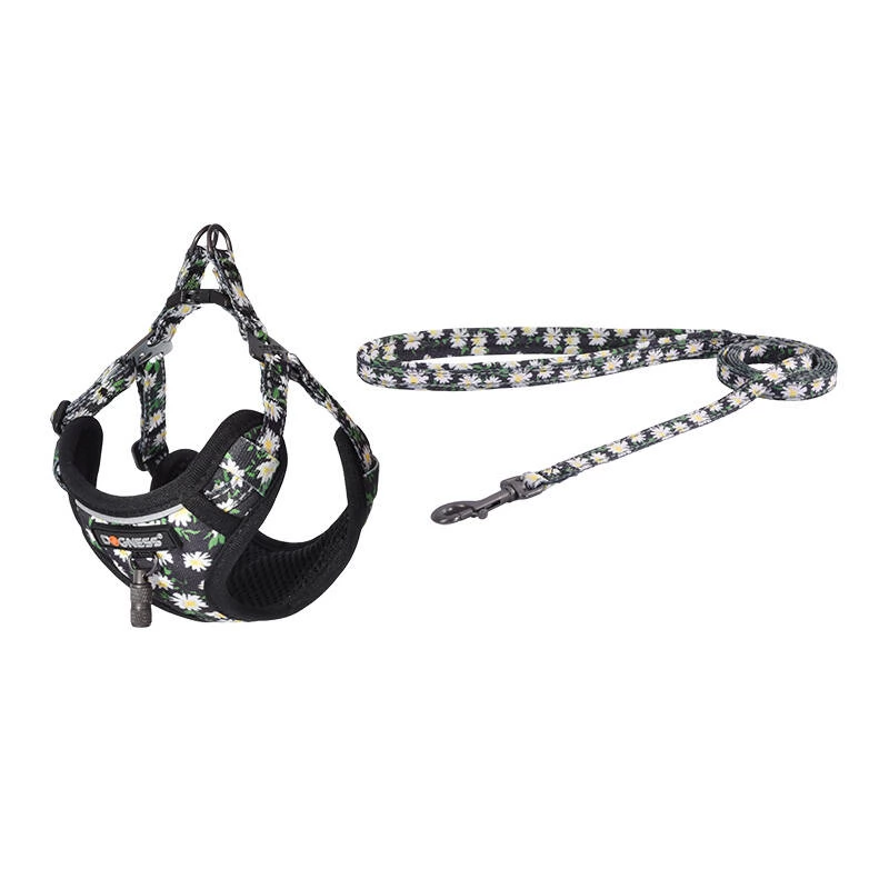 DOGNESS Dog póráz 1.5m + hám sétakészlet százszorszép black