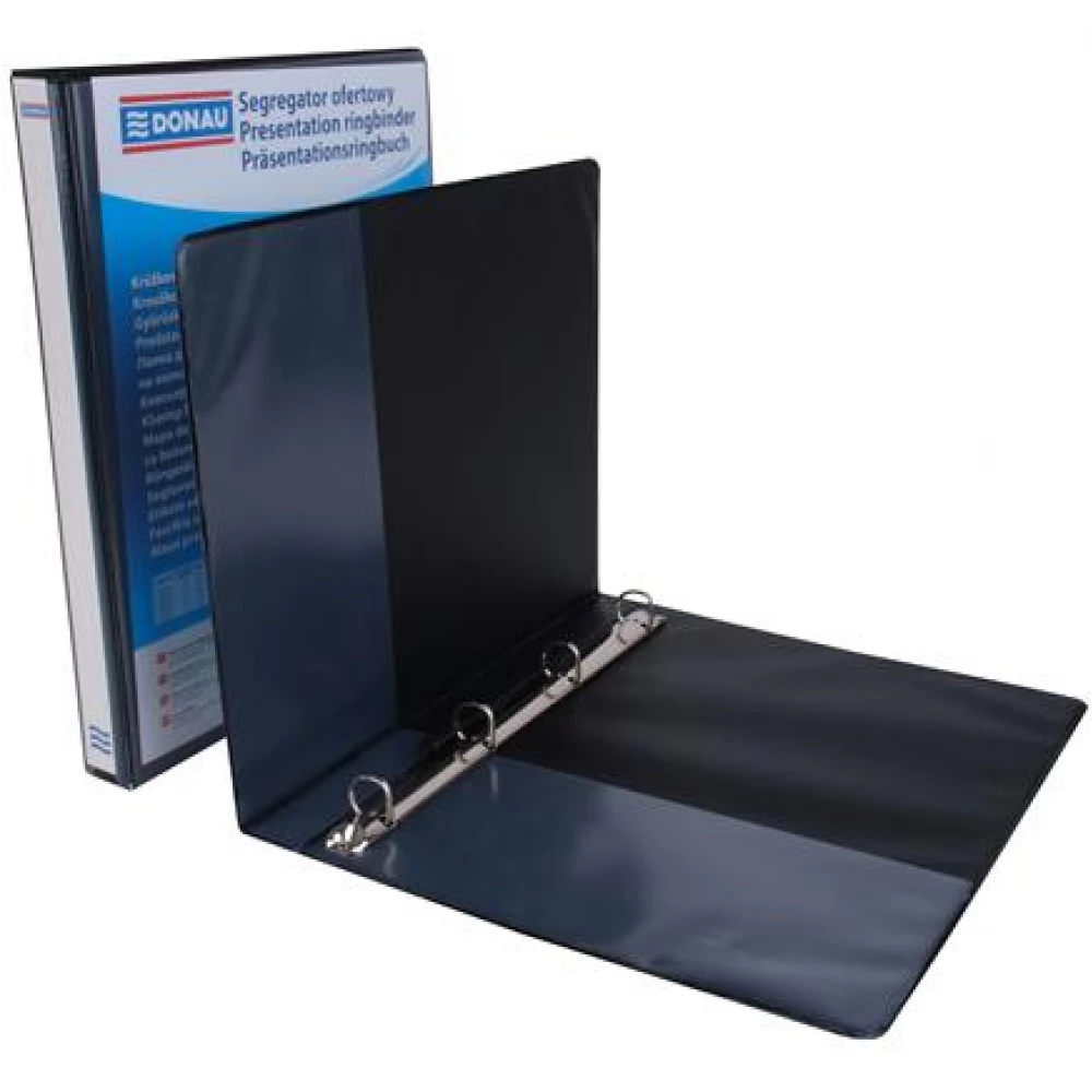 DONAU Gyűrűskönyv panorámás 4 ring D form 25mm A4 PP black