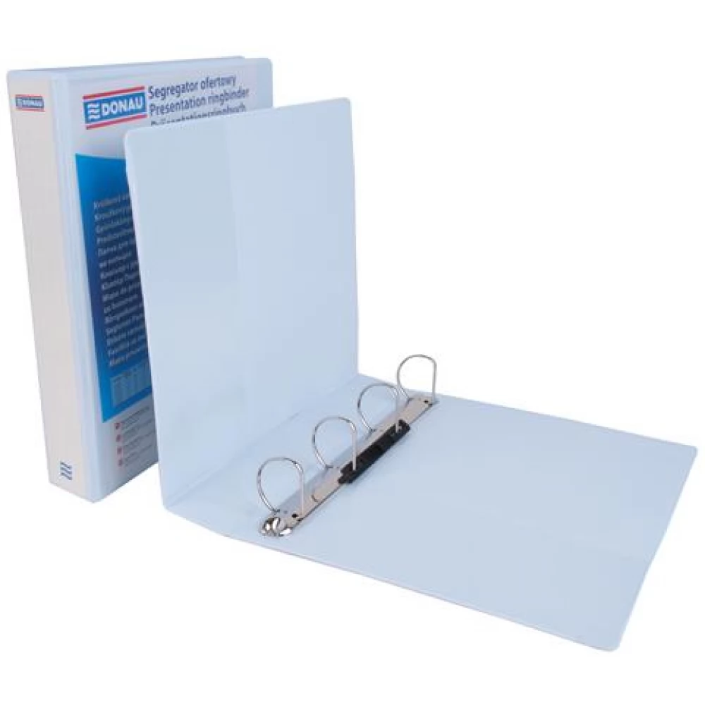 DONAU Gyűrűskönyv panorámás 4 ring D form 40mm A4 PP white