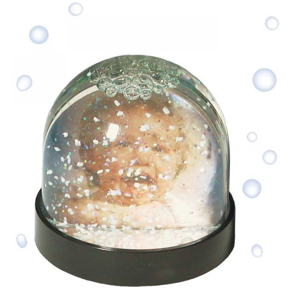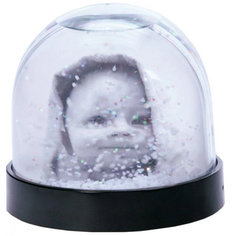 There is a flat cavity inside the shaking snow globe where you can put your own photo on each side. The sponge between the two photos ensures that the photos fit snugly against the plexiglass wall. With the help of the template in the snow globe, your own photo can be cut into a shape that fits exactly into the cavity, so you can create a unique, personalized gift or decoration in a matter of seconds.