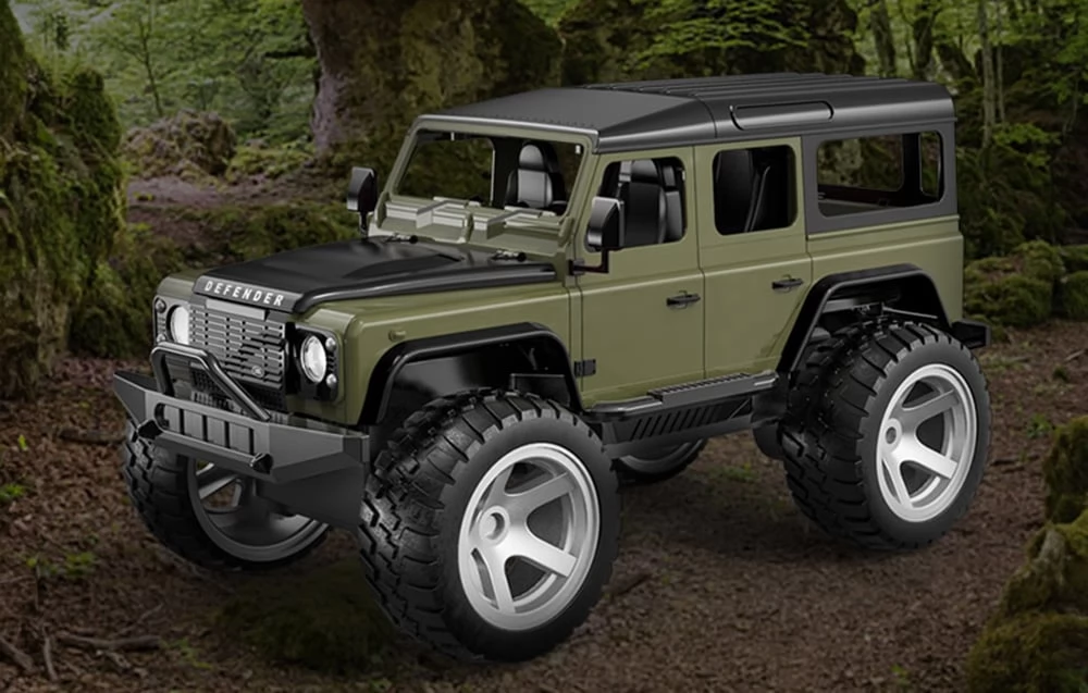 The 1:14 scale, officially licensed Land Rover Defender remote-controlled off-road vehicle with LED lighting.