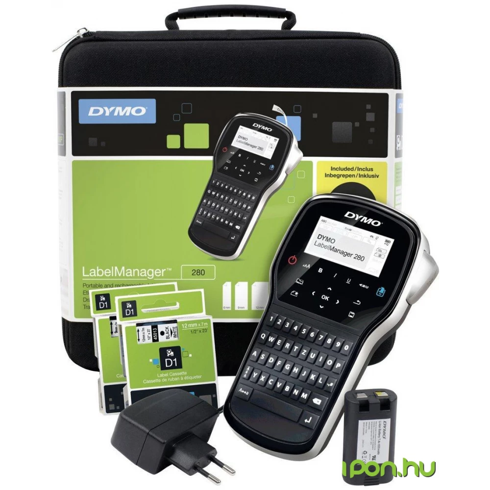 Organize anything with the portable and rechargeable DYMO® LabelManagerTM 280. When connected to your computer, you can use the fonts and graphics on your computer to create custom-designed labels. Fast, convenient and simple text entry on the computer-style keyboard, with a different allocation for each country. Fast text editing with one-touch, quick formatting buttons. You can make labels without the waste and cost of disposable batteries - you can write and print after charging with the rechargeable battery. The LabelManagerTM 280 prints 50% faster than other DYMO labeling machines. You can create a variety of DYMO D1 labels in 6, 9 and 12mm widths and in a variety of colors - perfect for labeling folders, shelves, equipment and more.