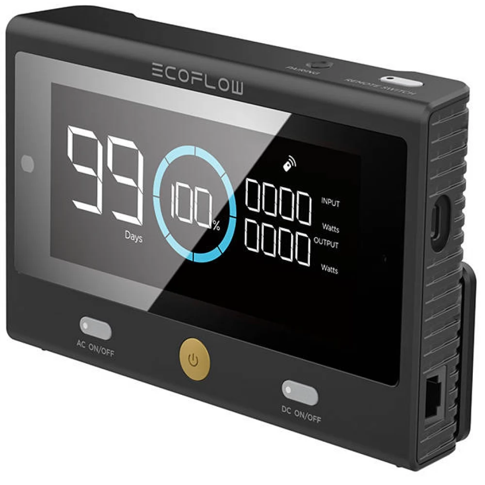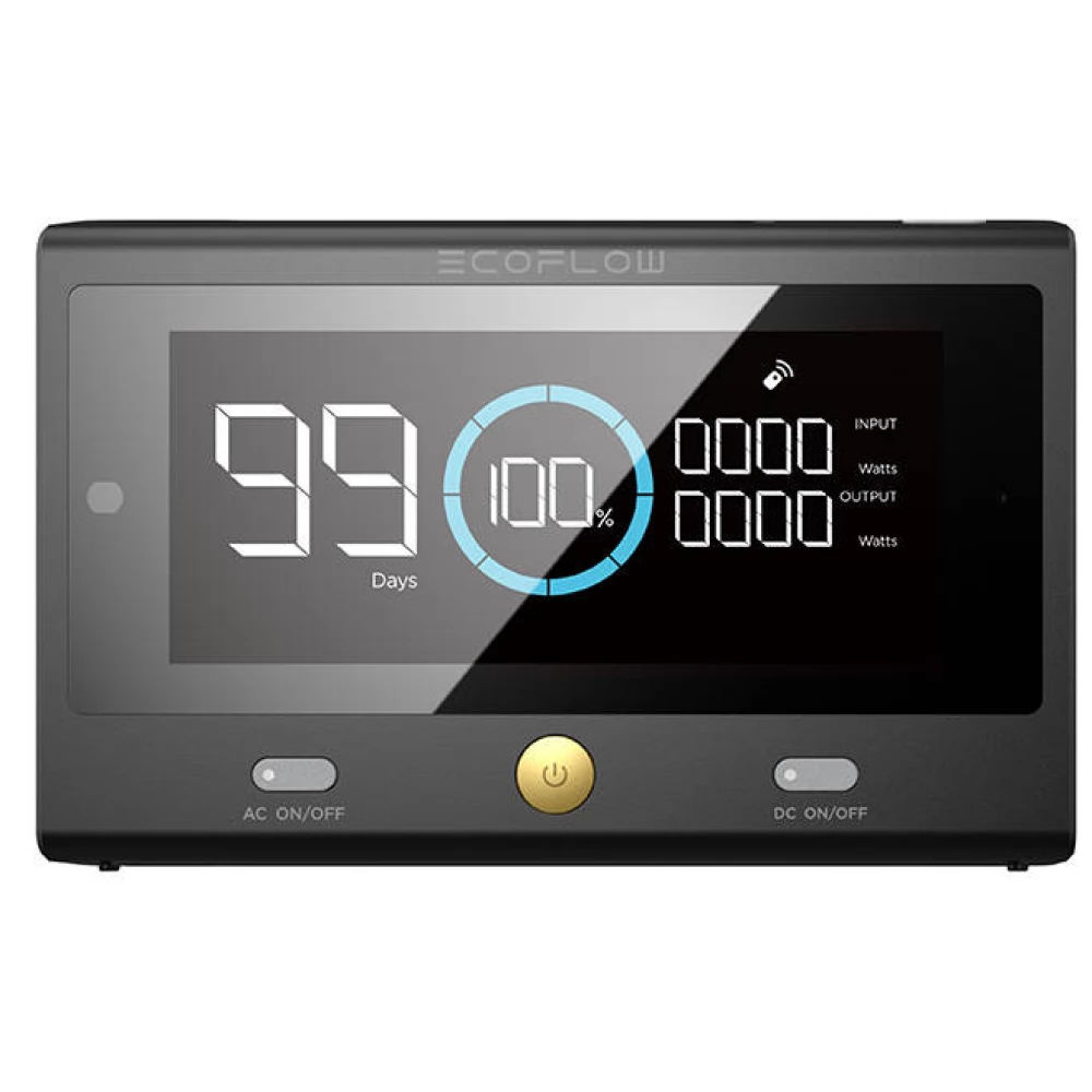 Enjoy the convenient remote control of your smart station. This intelligent control panel was created with the EcoFlow DELTA Pro in mind. You can connect it with an Ethernet cable or via Bluetooth and use the second display wherever you want without hindrance. This is ideal if the station is located in the garage or under the table - no more bending down to check certain parameters! Note: the panel is only compatible with EcoFlow DELTA Pro units.