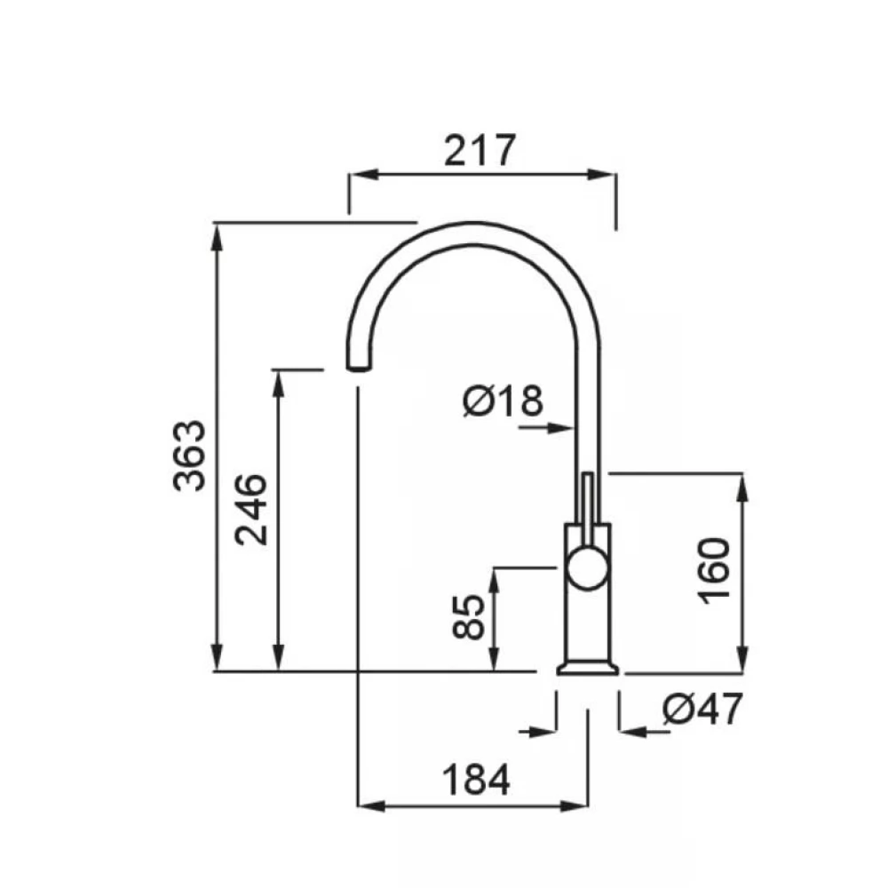 Single-armed modern, curved, tall, ceramic tap, side control, rotating spout, normal installation, Ø35 mm hole. It is available in 4 colors.