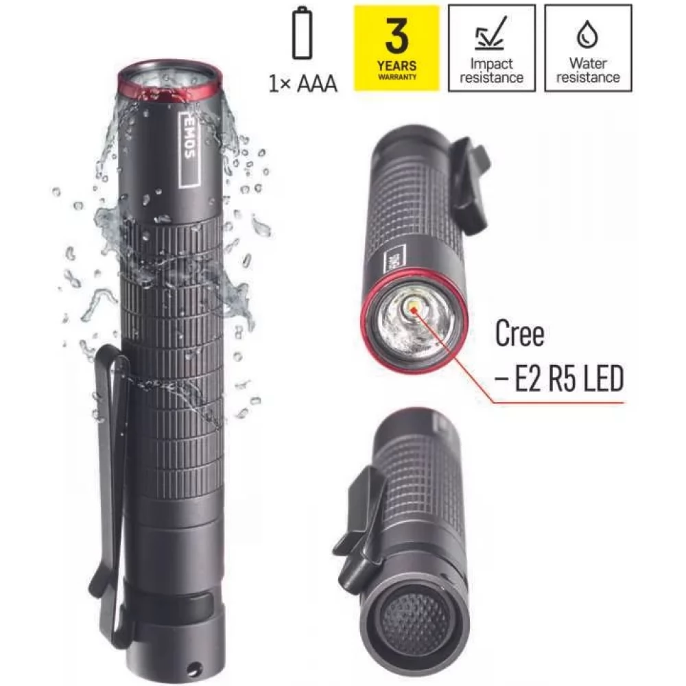 It will serve you as a perfect assistant during work, when you fully rely on the functionality of your device. At the same time, you will appreciate the EMOS Ultibright flashlight during everyday activities at home, hiking or traveling. Thanks to the practical clip, reliable strap and compact size, you can always take it with you if necessary. EMOS Ultibright flashlights are guaranteed for three years as standard.