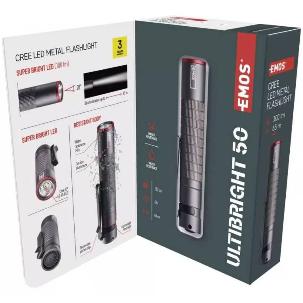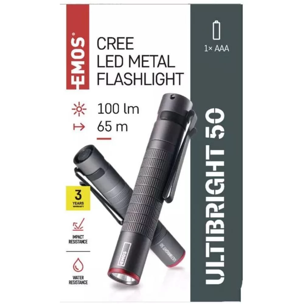 Do you also face the problem every day that you need to light something, but you don't have a lamp at hand? With the EMOS Ultibright 50 LED flashlight, it will be different! It becomes a perfect assistant for you as well. Because it is light, small, but still powerful.