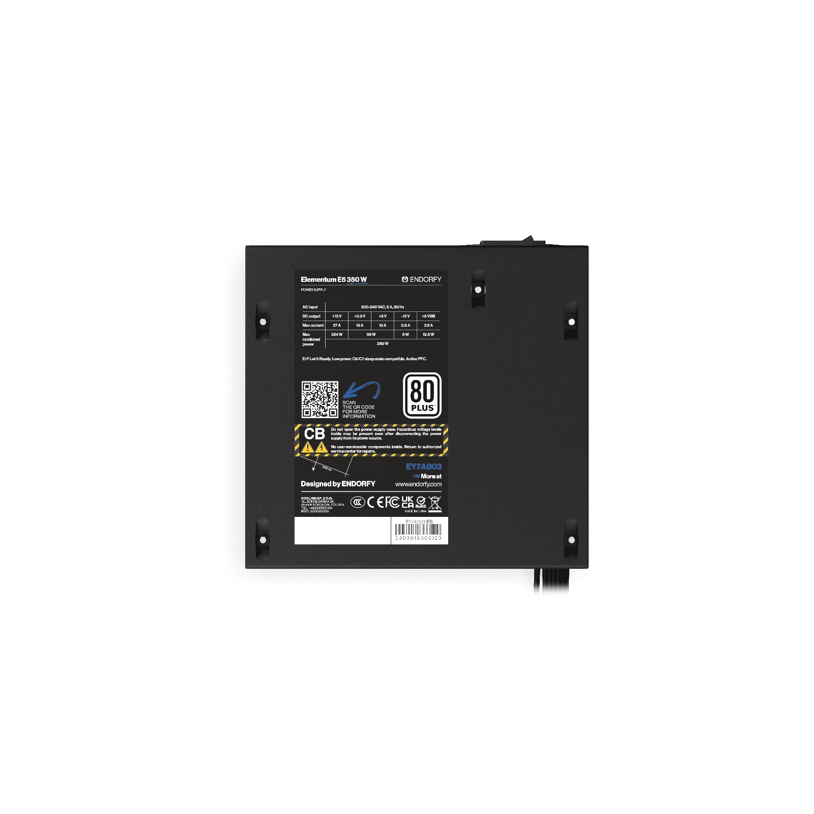 Meet the Elementum E5 350 W, a stable power supply with 80 PLUS® certification for those who value the safe operation of their computer with a constant power of 350 W.