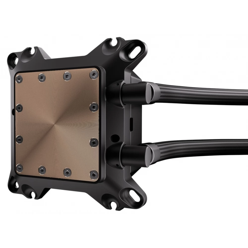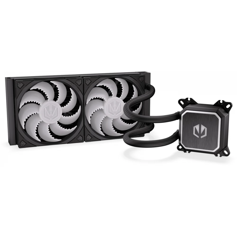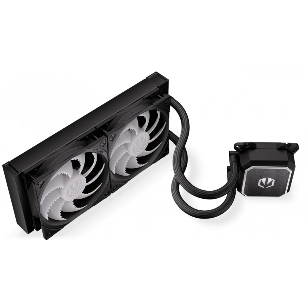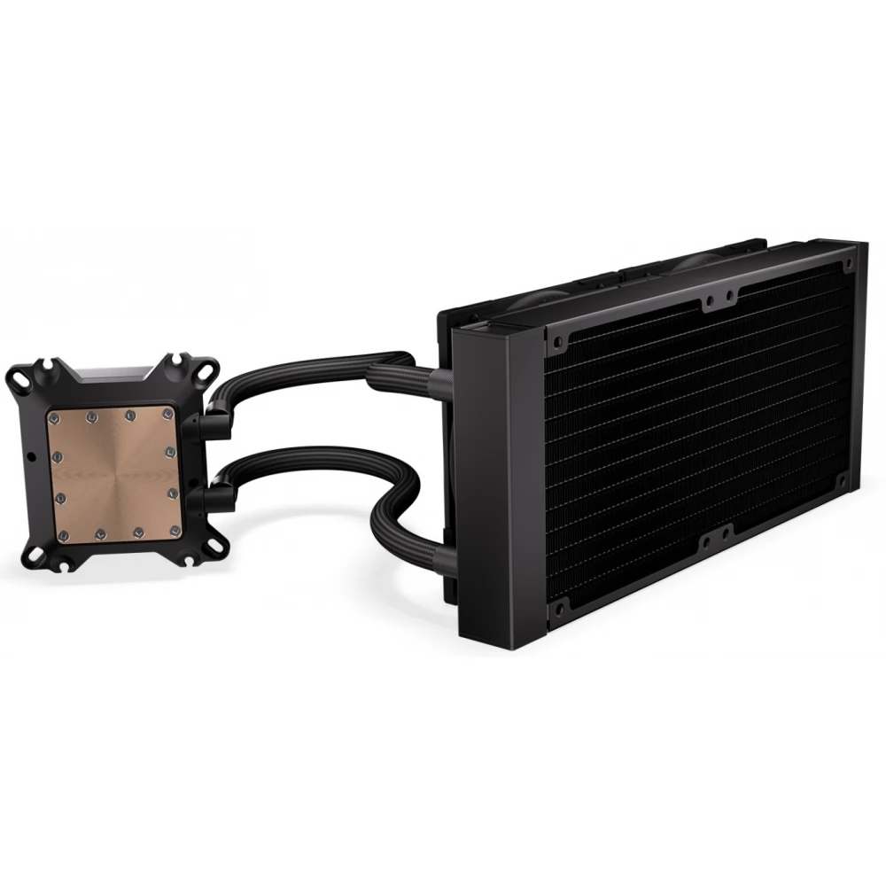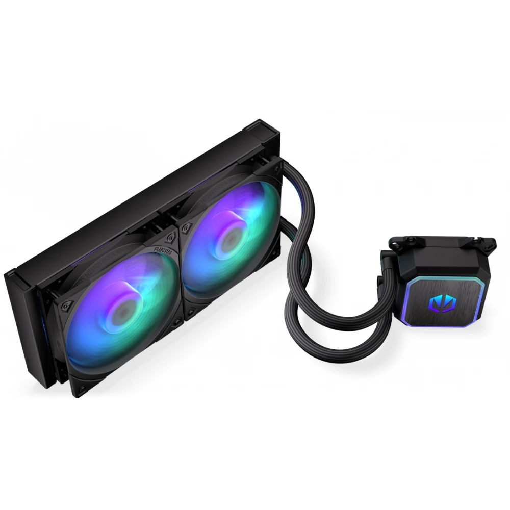 Compact, universal water cooling with 2 120mm controllable fans with ARGB lighting and PWM control and CPU water cooling block with also controllable ARGB lighting.
