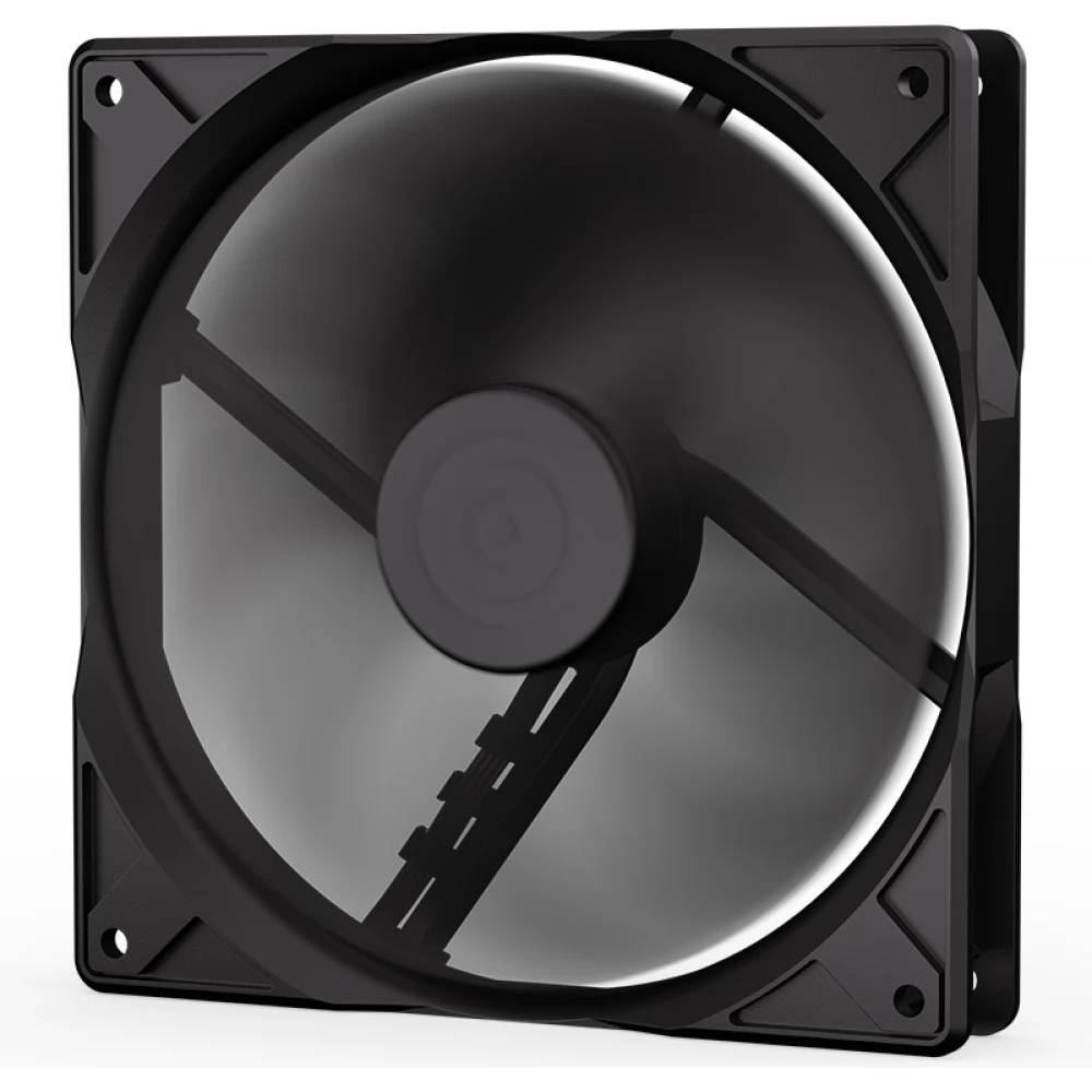 140mm case cooling fan with PWM speed control. The special feature of the fan is that it also has a semi-passive mode: it can stop at a low control signal, reducing the noise of our machine.