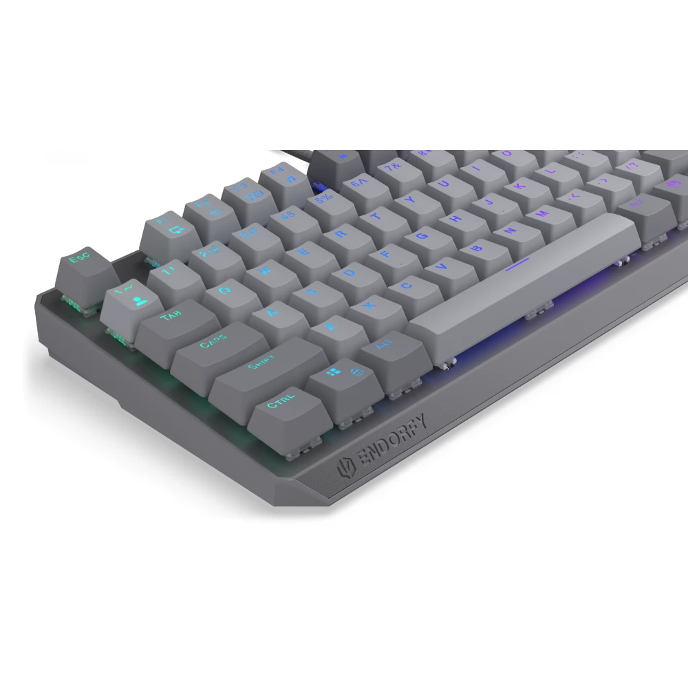 The Thock V2 TKL features exclusive ENDORFY Red mechanical linear switches - fast, responsive and specially designed for gamers, inspired by the well-respected ENDORFY Yellow color. Their milky white housing enhances light scattering through the keycap, while the factory-lubricated, nylon-based design ensures smooth keystrokes with a deep, clean acoustic profile.