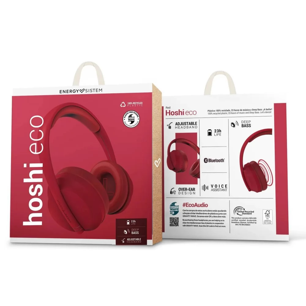 All plastics used in the production of Hoshi ECO Bluetooth headphones are 100% recycled and GRS certified (Global Recycled Standard). Because plastic waste poses a serious threat to our planet. Now is the time to act!