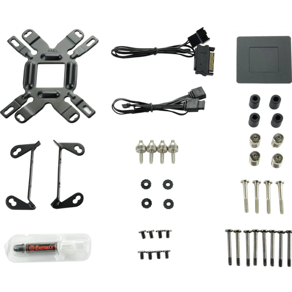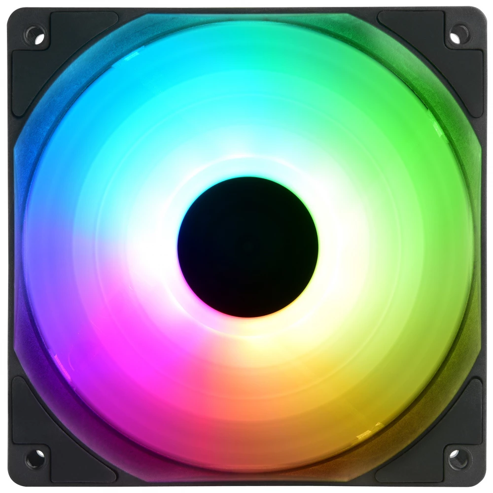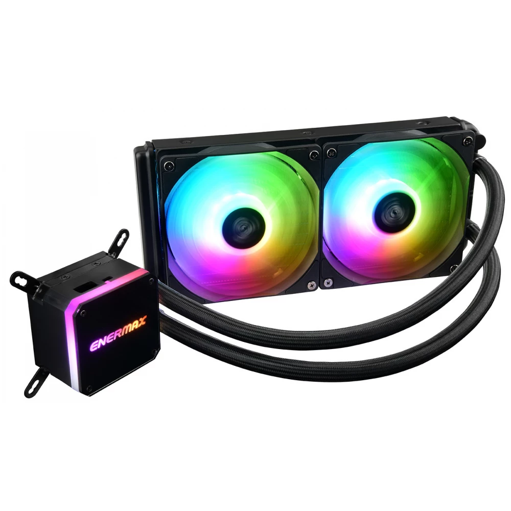 Compact, universal water cooling with 2 120 mm controllable ARGB LED (with 4-pin PWM/3-pin ARGB connection) fans and also controllable ARGB LED CPU cooling block.