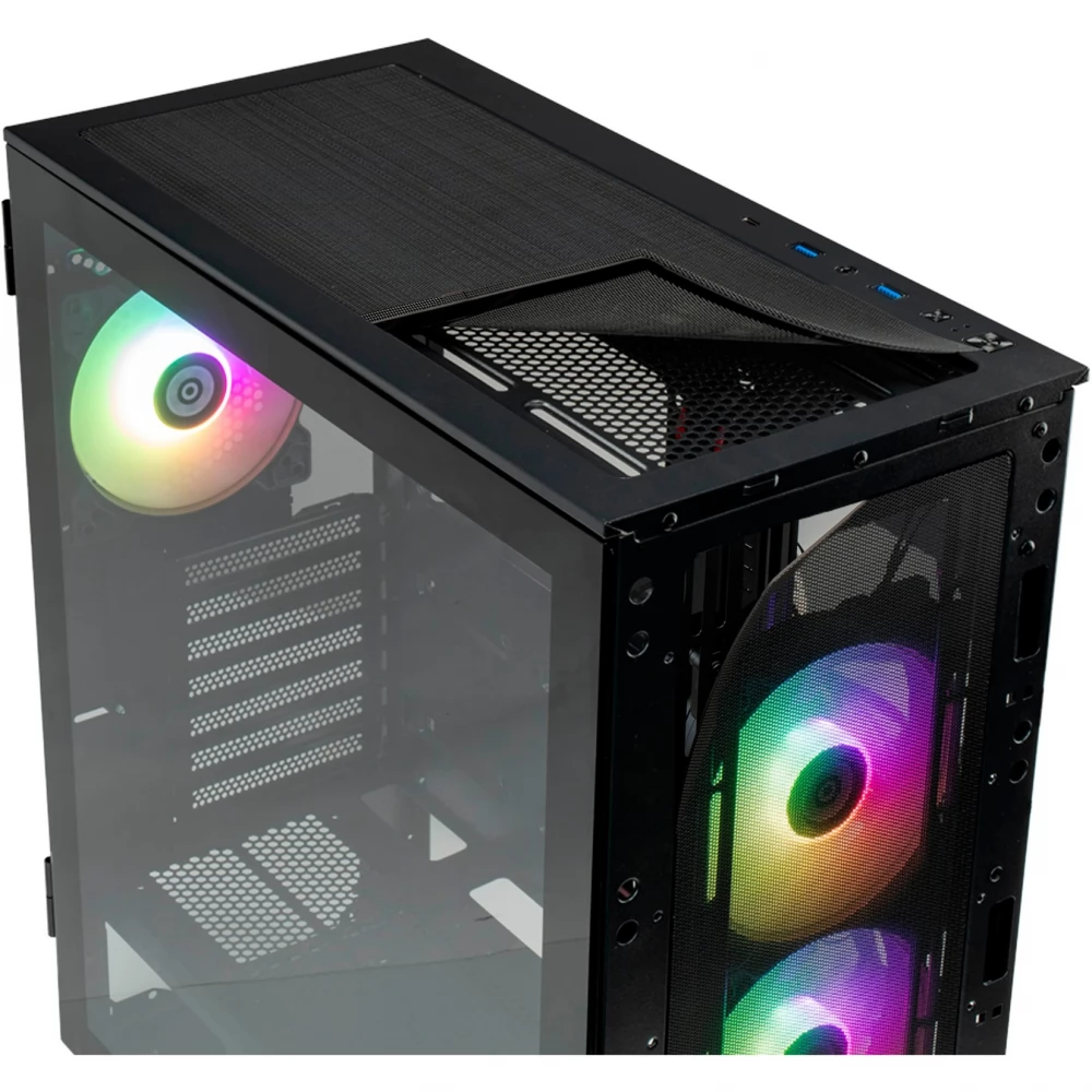 E-ATX format tower computer case with 4 built-in 120 mm ARGB fans.