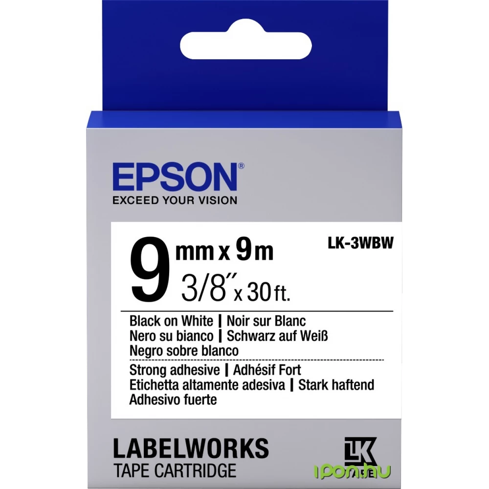 Epson C53S653007 label tape, 9mm x 9m, black and white.