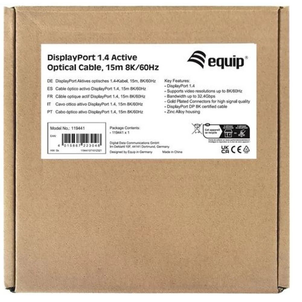 EQUIP DisplayPort 1.4 Connector Black 20m 119442