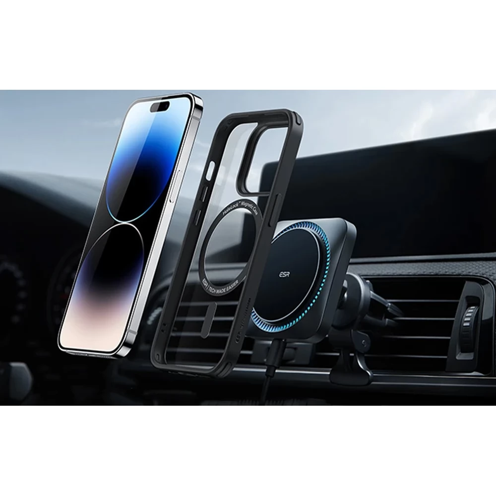 Keep your smartphone safe. The ESR case is designed for the iPhone 14 Pro Max and supports wireless charging. It works with Magsafe and Halolock technology and, thanks to its smart design, effectively protects your smartphone from injury.