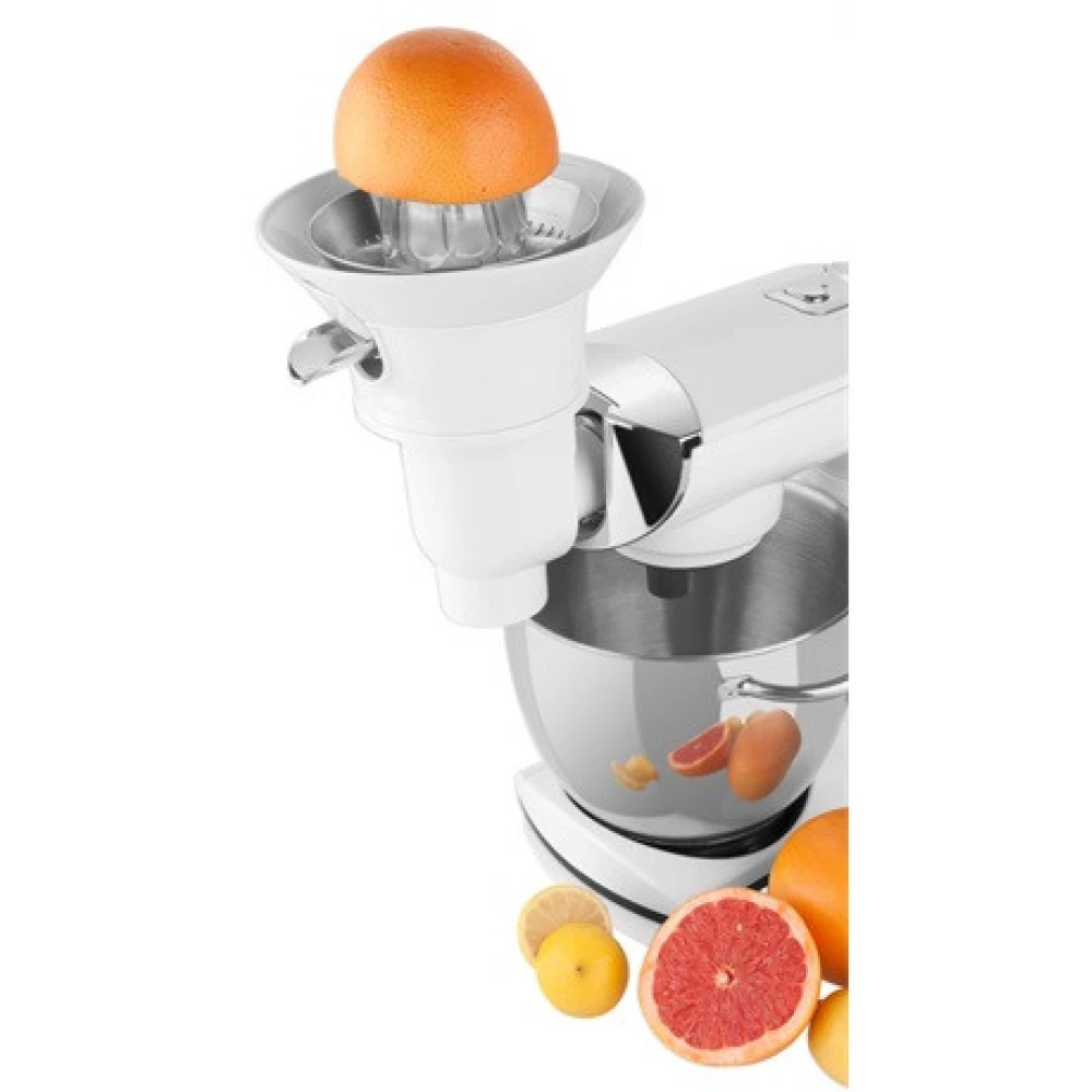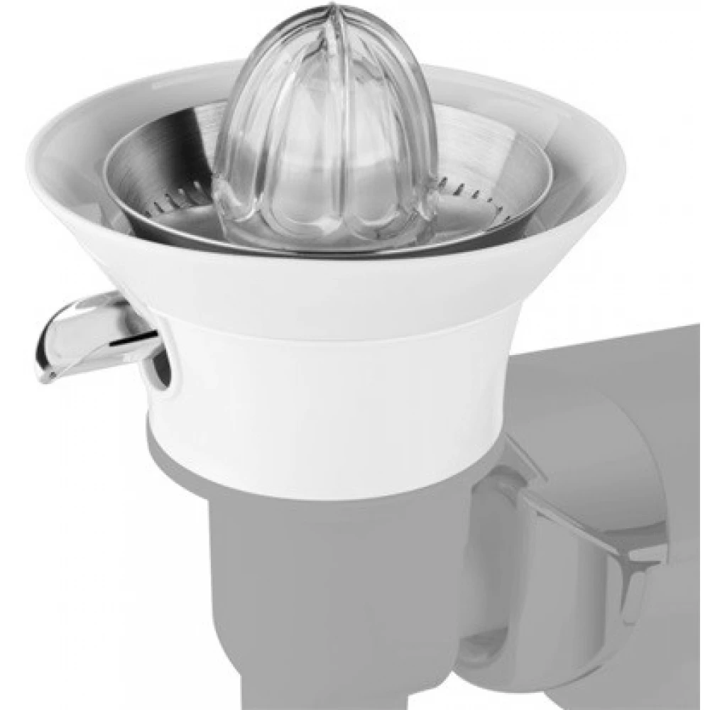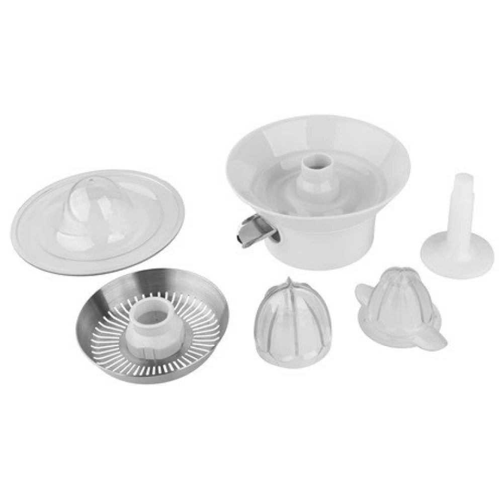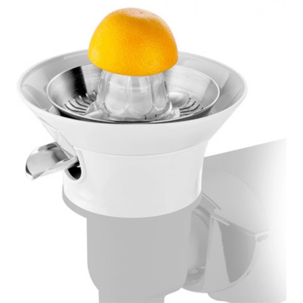 "Citrus juicer for food processors ETA 0028 Gratus, ETA 0128 Gustus, ETA 0023 Gratussino, ETA 0030 Meno and ETA 0033 Mezo (ETA 0028 98020) * Accessory for Gratus (ETA 0028), Gustus (ETA 0128), Gratussino (ETA 0023), For Mezo (ETA 0033) and Meno (ETA 0030) food processors * ETA 0028 99999 gear is required to use the accessory (not included) * Fast and convenient juice extraction from citrus fruits * 100% vitamin content in the juice * Better juice extraction * First class and hygienic materials * Juice collector with lockable pouring spout * Juicing cones for different sized fruits * 2 x juicing cones of different sizes * Stainless steel sieve * Safe use * Lid for hygienic closing * Simple operation * Practical and efficient helper * Simple and hygienic cleaning * Parts that can be washed in the dishwasher"