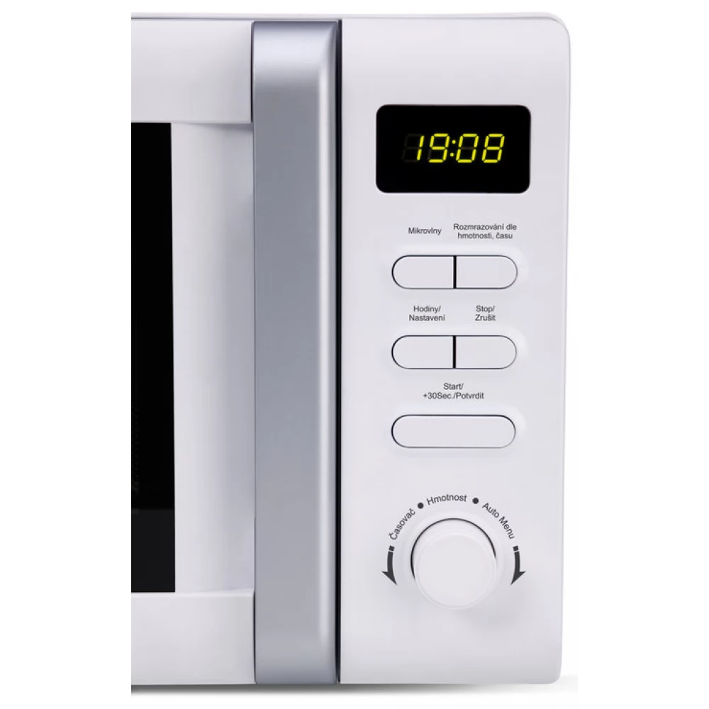 Microwave oven with simple controls. Everything important is displayed on its digital display. The microwave power has 5 levels and 2 defrosting modes. Its other functions include 8 selectable programs, power and cooking time with automatic settings. Microwave power 700 W, internal capacity 20 l.