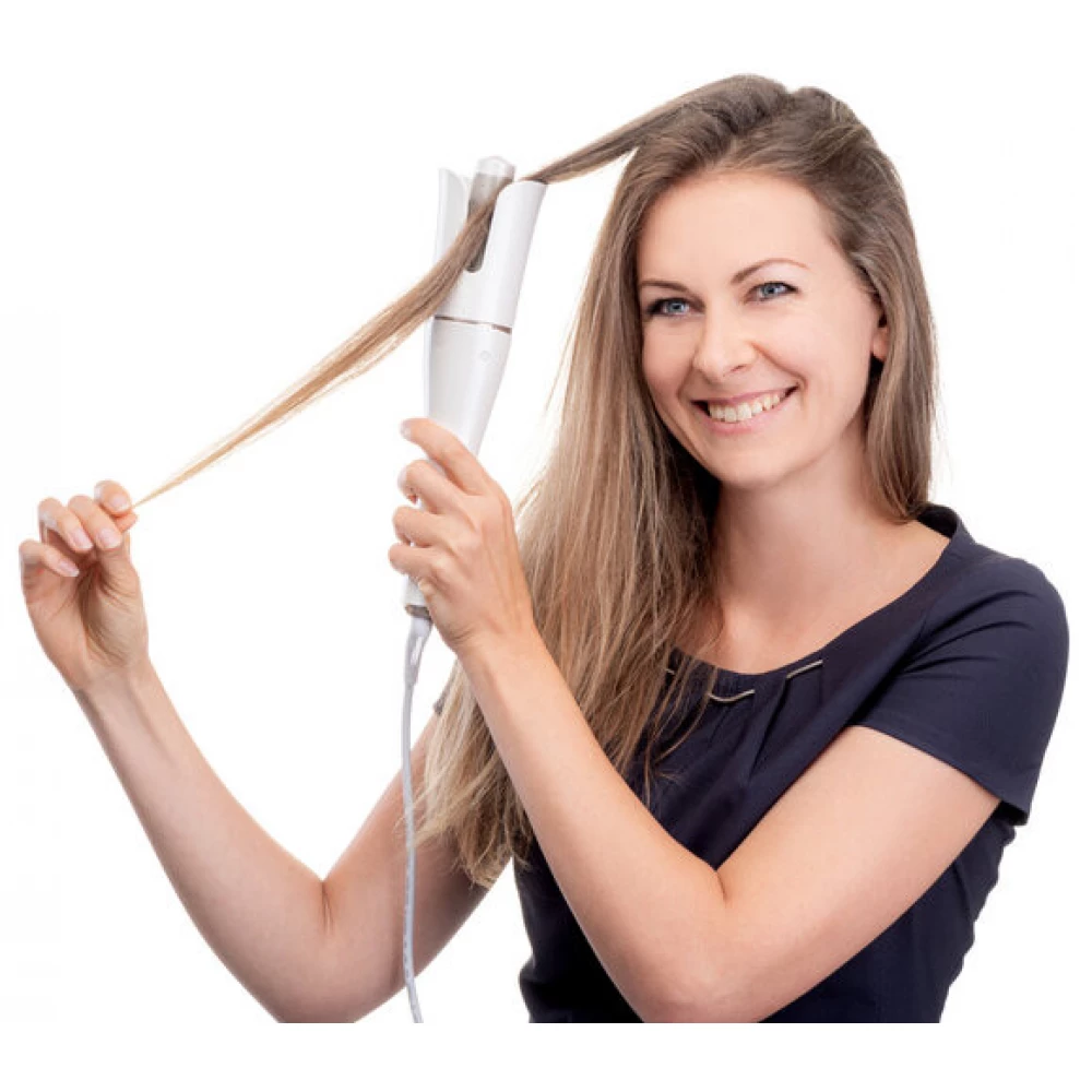 - ON / OFF switch and direction buttons to reverse the curl