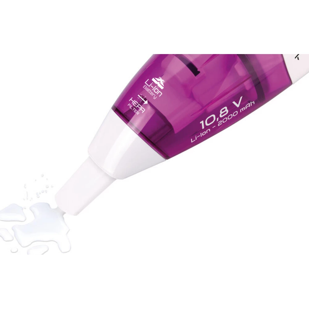 Handheld vacuum cleaner for dry and wet vacuuming, with a quality HEPA filter and Li-Ion 10.8 V battery with up to 15 minutes of operation.