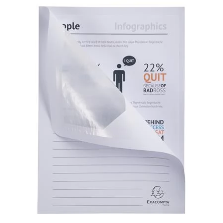 - Blue Angel certified material - viewing window - capacity: 30 sheets (80 g/m2) - Recycled cardboard, 130 g/m2 - For A4 size - size: 220 x 310 mm