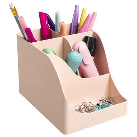 - 5 compartments - 4 compartments for stationery, scissors - 1 compartment for smaller accessories, mobile - Material: recycled plastic - Made of material with Blue Angel - Size: 160 x 120 x 110 mm (Wed...