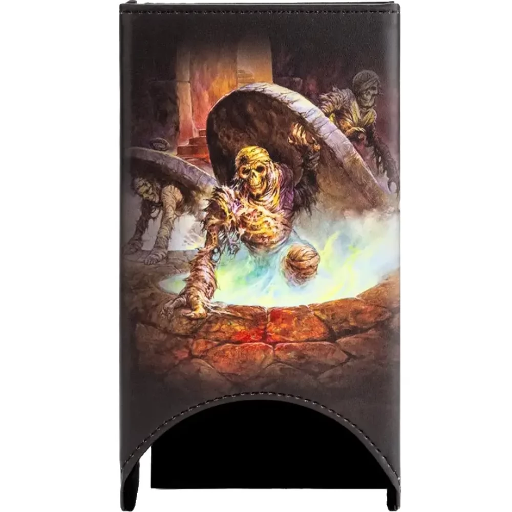 Jeff Easley's creepy Cyclopean Mummies painting comes to life on this premium throwing tower. Complete leather cover, velvet inner and leather tongue provides quiet, silky rolling, while the magnetic, sheet -mounted design can be easily taken anywhere with you.