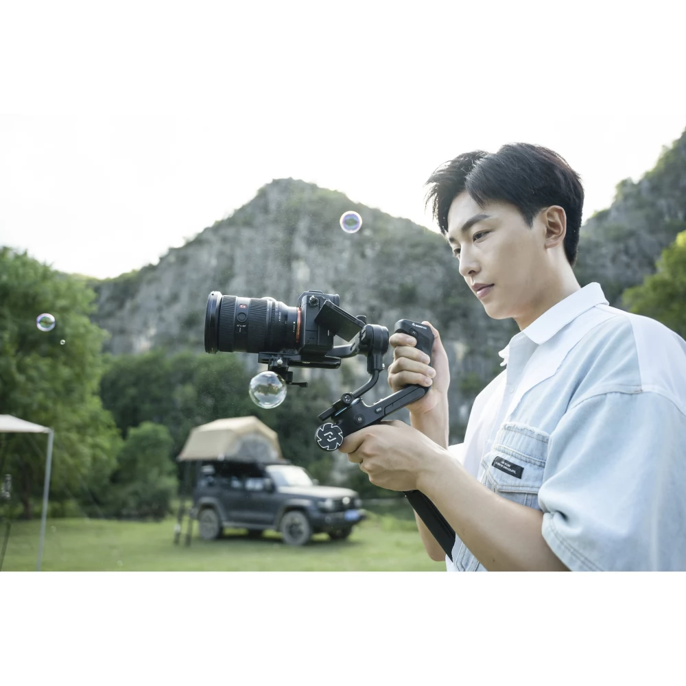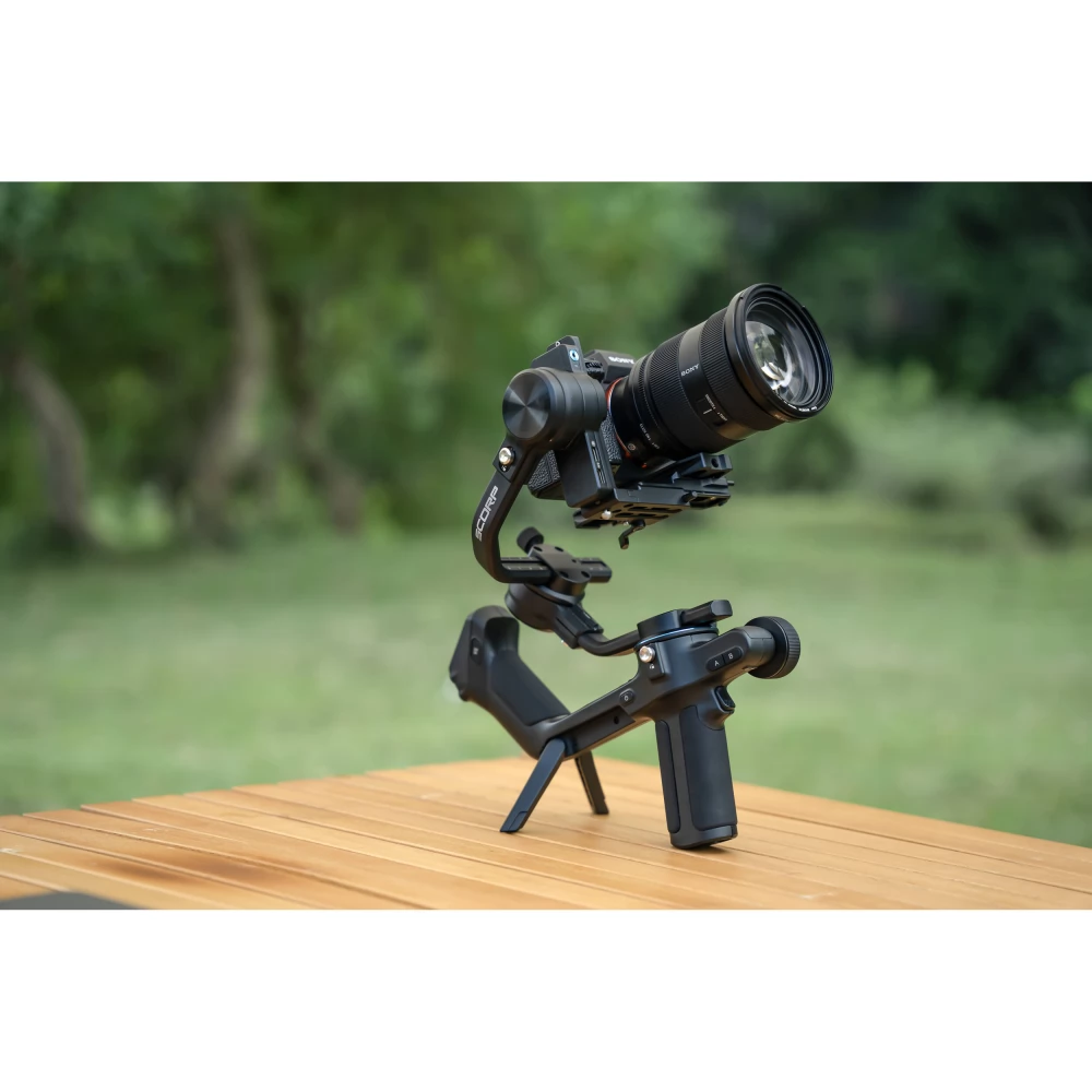 - You can control the device with the joystick from the gimbal, the touch screen display or through the Feiyu Scorp application.