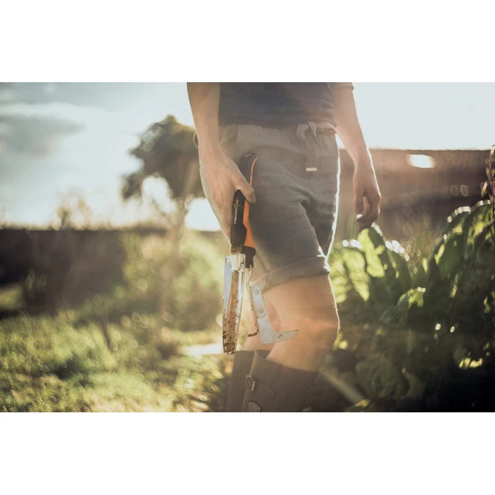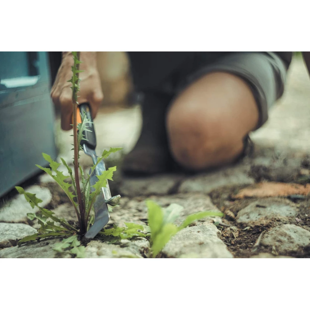 Our durable Xact™ edging knife is ideal for the effective removal of weeds and moss between stone slabs and paving slabs. Thanks to its unique stainless steel head design and sharpened edges on both sides, it guarantees efficient and precise work. Its comfortable, longer handle with SoftGrip™ parts allows you to take up more working positions with it.