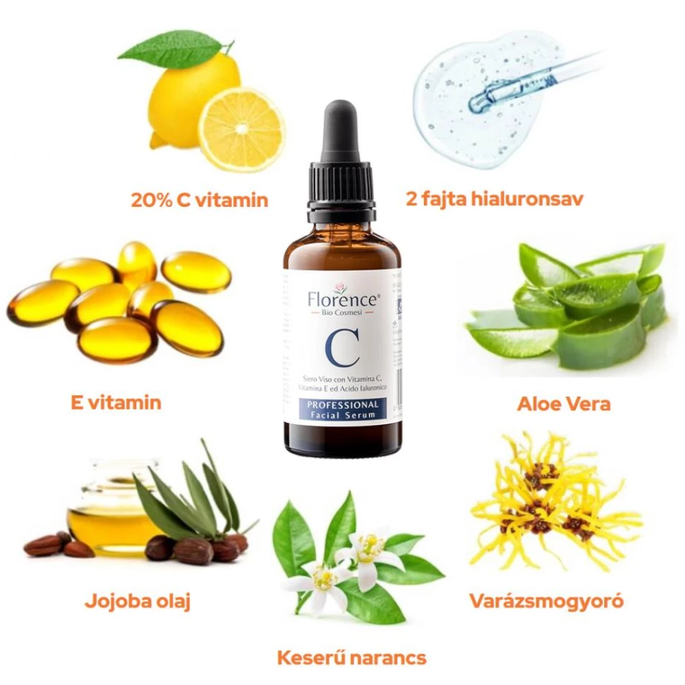 One of Europe's best-selling facial serums is finally available in Hungary! With its anti-aging and anti-wrinkle ingredients, the Florence® BIO Vitamin C serum can create tighter, smoother, more radiant skin with a uniform texture within a few weeks of use. Deeply hydrates and provides a youthful glow! It reduces wrinkles, visibly fades pigment spots and relieves inflamed acne. It reduces skin redness caused by rosacea with unique efficiency!