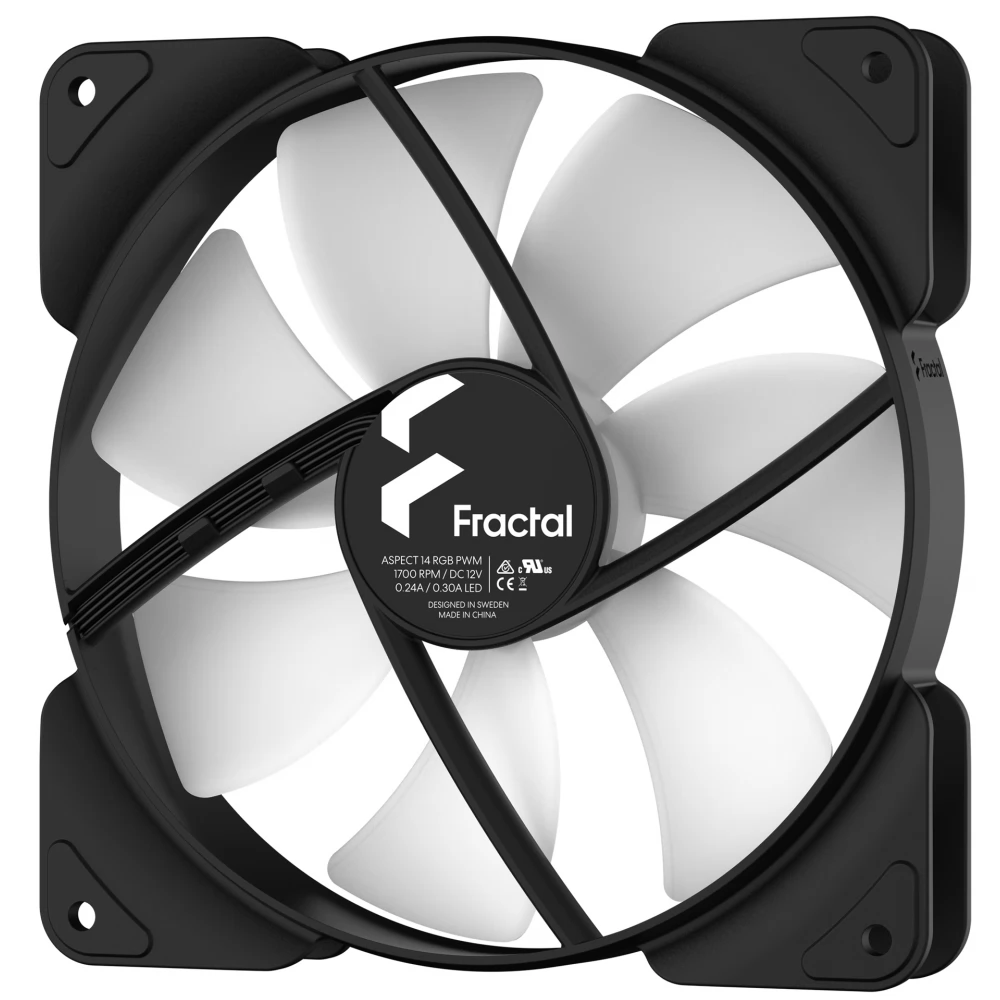 Fractal Design Aspect 14 RGB PWM 140mm case cooling fan with 4-pin PWM connector and controllable ARGB lighting.