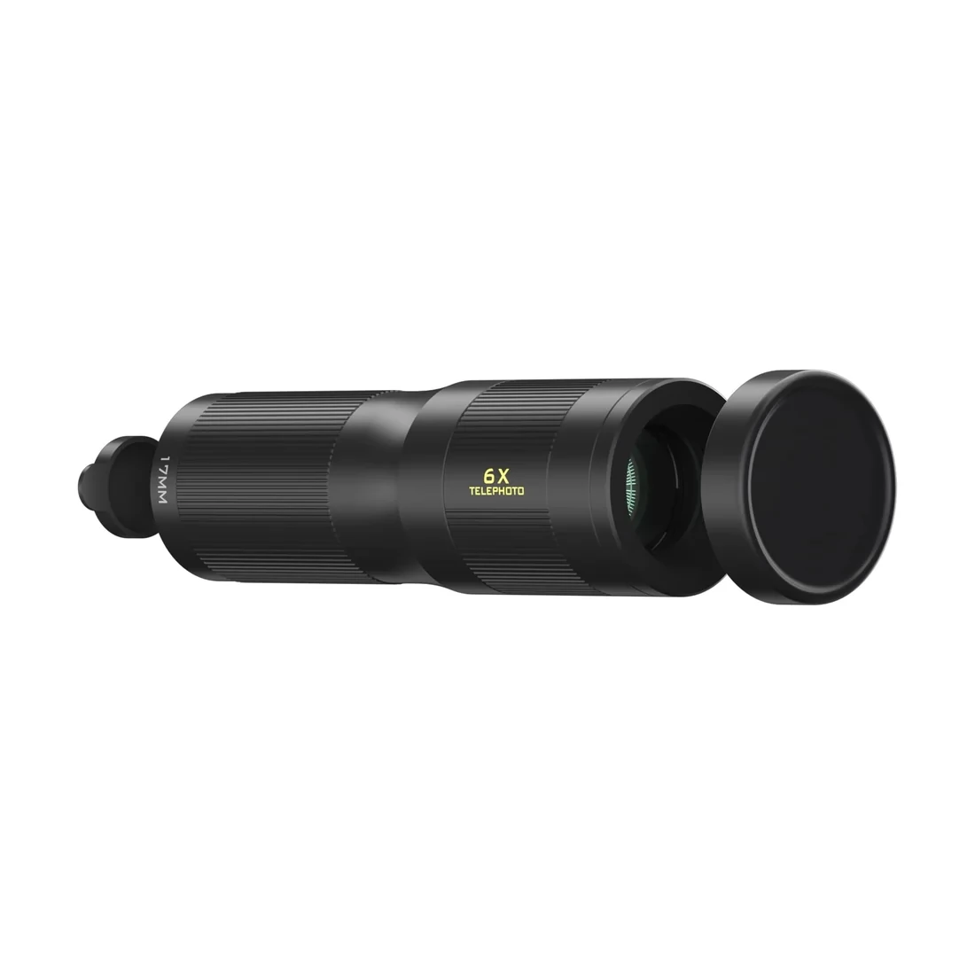 6x optical zoom for photography of wild animals and sporting events. Anti-reflection coating, durable aluminum design, 15.7 ° view and rack-friendly design. It can be safely screwed into the 17 mm thread fastening on the smartphone case or Genius Rig system.