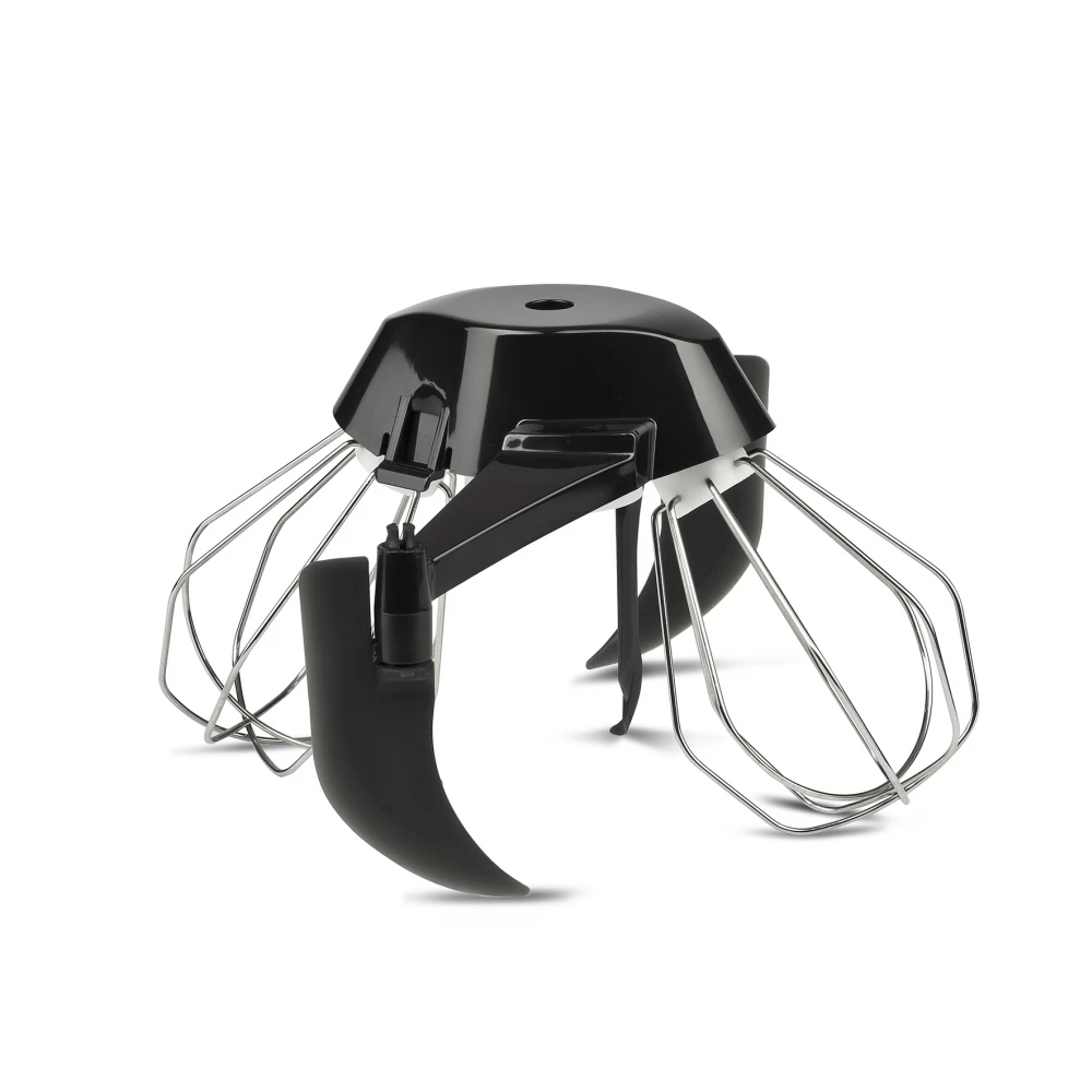 - Accessories: Double whisk from stainless steel, double mixer, double aluminum hook, silicone spatulas, transparent cover