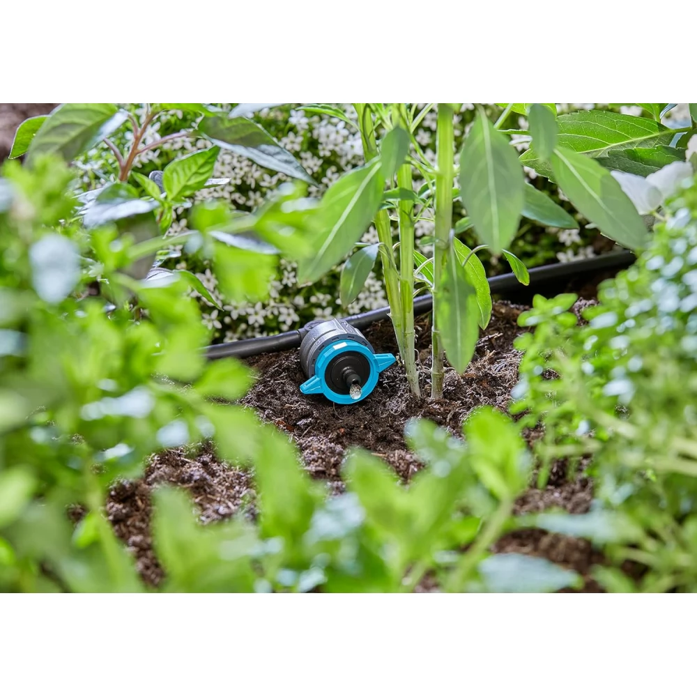 With Gardena's adjustable and pressure-equalizing Inline drip head, you can optimally water balcony plants in flower pots or bedding plants in rows. The Inline drip head connects to the 4.6 mm supply pipe of the Micro-Drip-System. You can set the amount of water dosing individually, by scaling between 1 and 8 liters/hour. The MDS component is therefore ideal for changing or increasing water demand. The pressure-compensating Inline drip head ensures that your plants located deeper or on a slope receive the same amount of water even with height differences on the balcony or terrace. Thanks to the Self-Clean function, the water dispenser has a self-cleaning labyrinth technology that prevents clogging. The smart Easy & Flexible connection technology enables intuitive installation. Simply connect the Inline drip head to the feed tube, flexibly expand the components and easily separate them again. Micro-Drip-System. Takes care of your plants and every precious drop. Simple, precise, water- and time-saving irrigation.