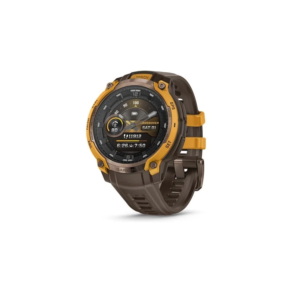 GARMIN Instinct Crossover Amoled bronz/sárga kakaóbarna silicone belt