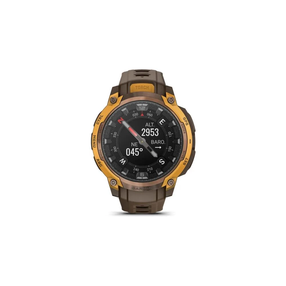 Explore with confidence with a rugged design that includes a dual-layer metal bezel, 10 ATM water resistance, scratch-resistant sapphire bezel, and MIL-STD grade construction for shock and heat resistance.