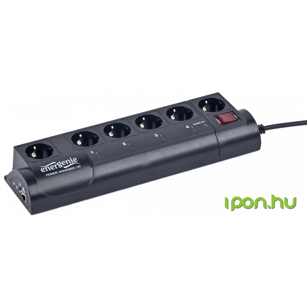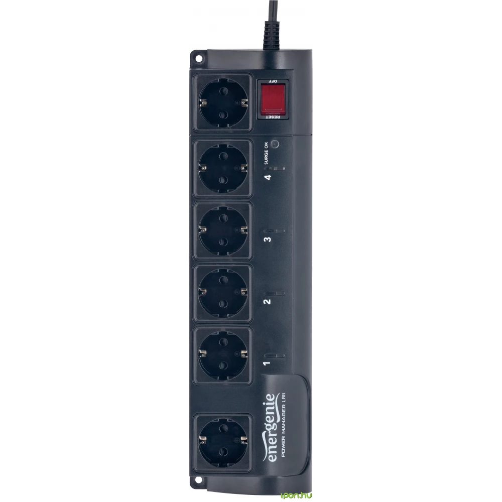 Surge protector with 6 230 sockets and 1 LAN connector.